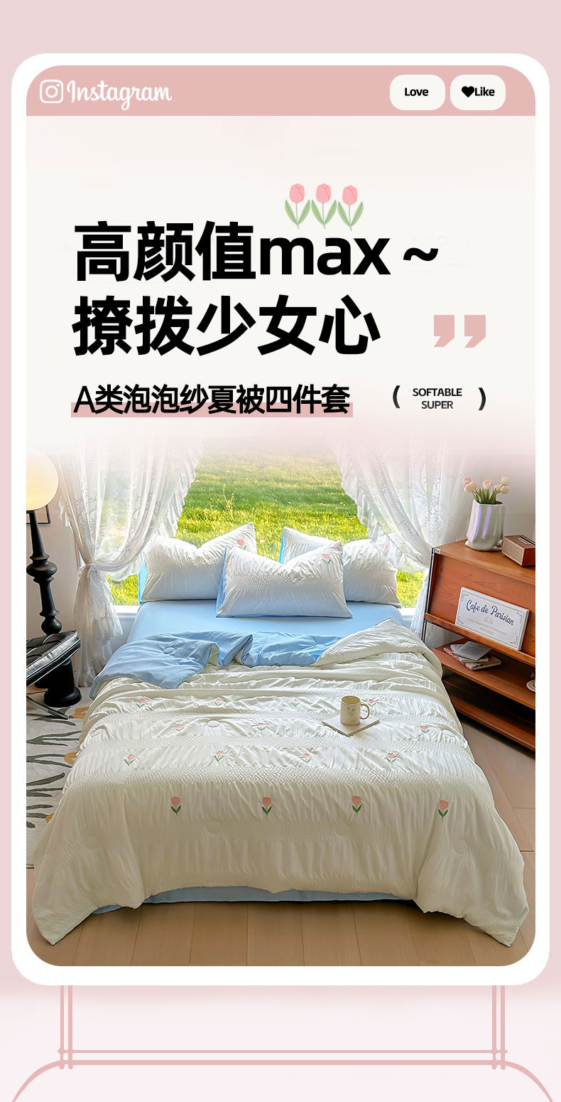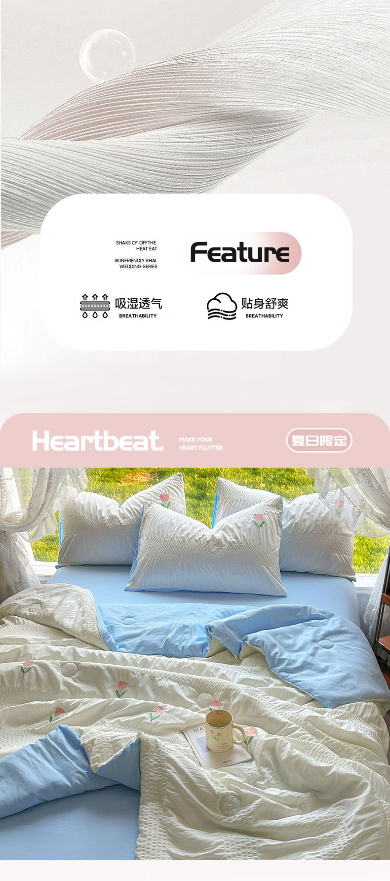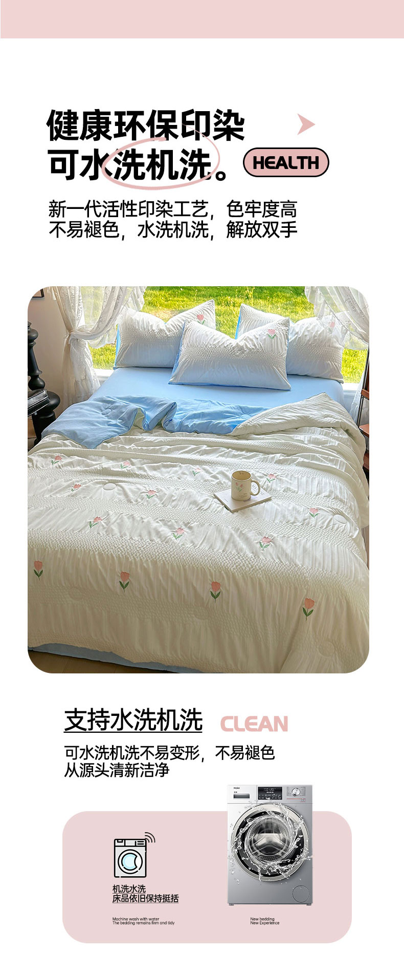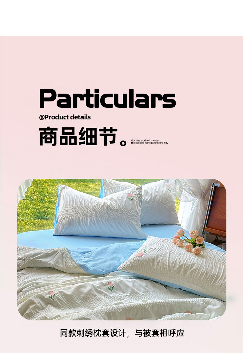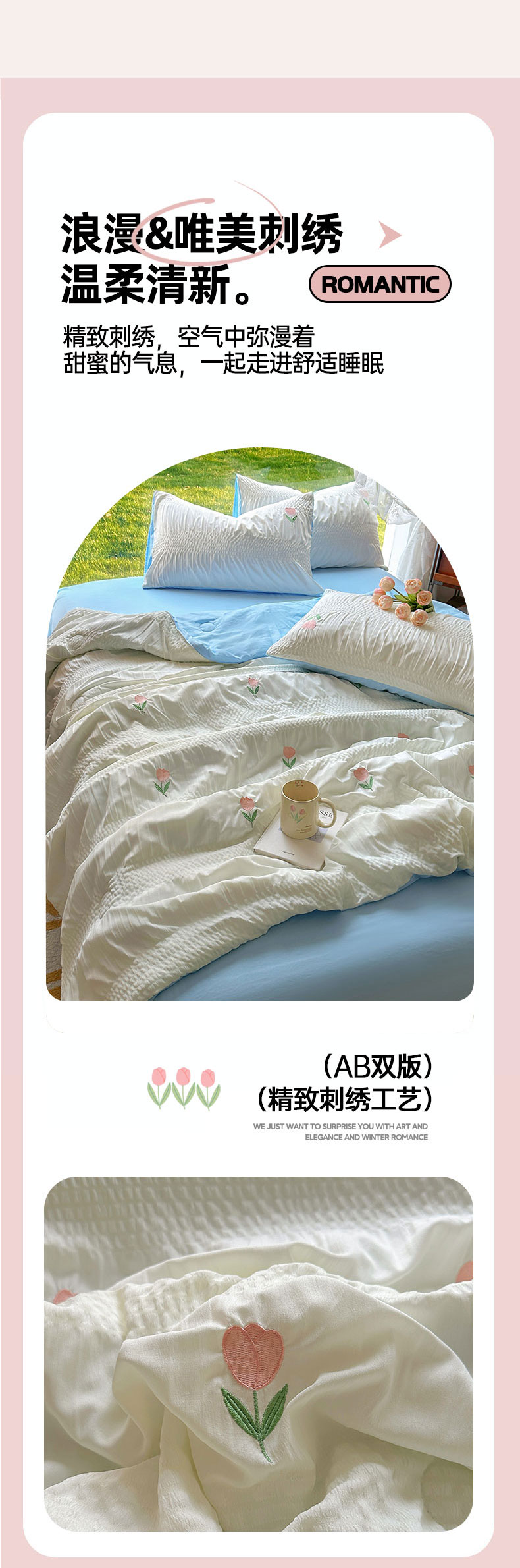当前位置: 91家纺网 > 商品网购 > 床品套件 > 四件套 > 全棉普通四件套 > 灰鲸 2025新款泡泡纱郁金香,蝴蝶结满绣系列夏被四件套 郁金香-奶昔白+天空蓝