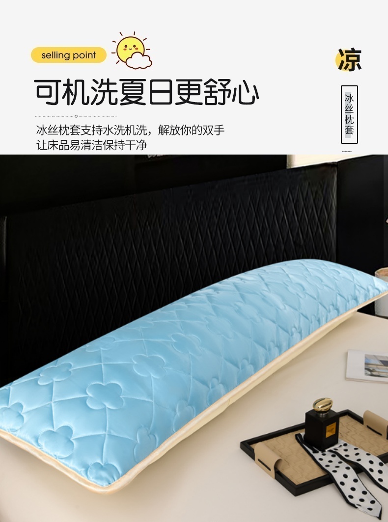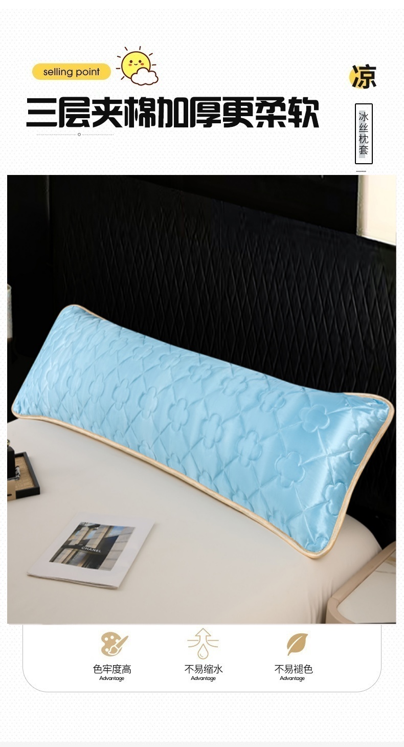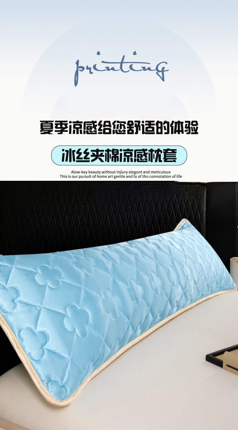 商品名称:梦舒羽 2025新款夏季冰丝凉感夹棉枕套双人情侣枕头套加长加厚枕芯套1.5m内胆套 夹棉加厚-天空蓝