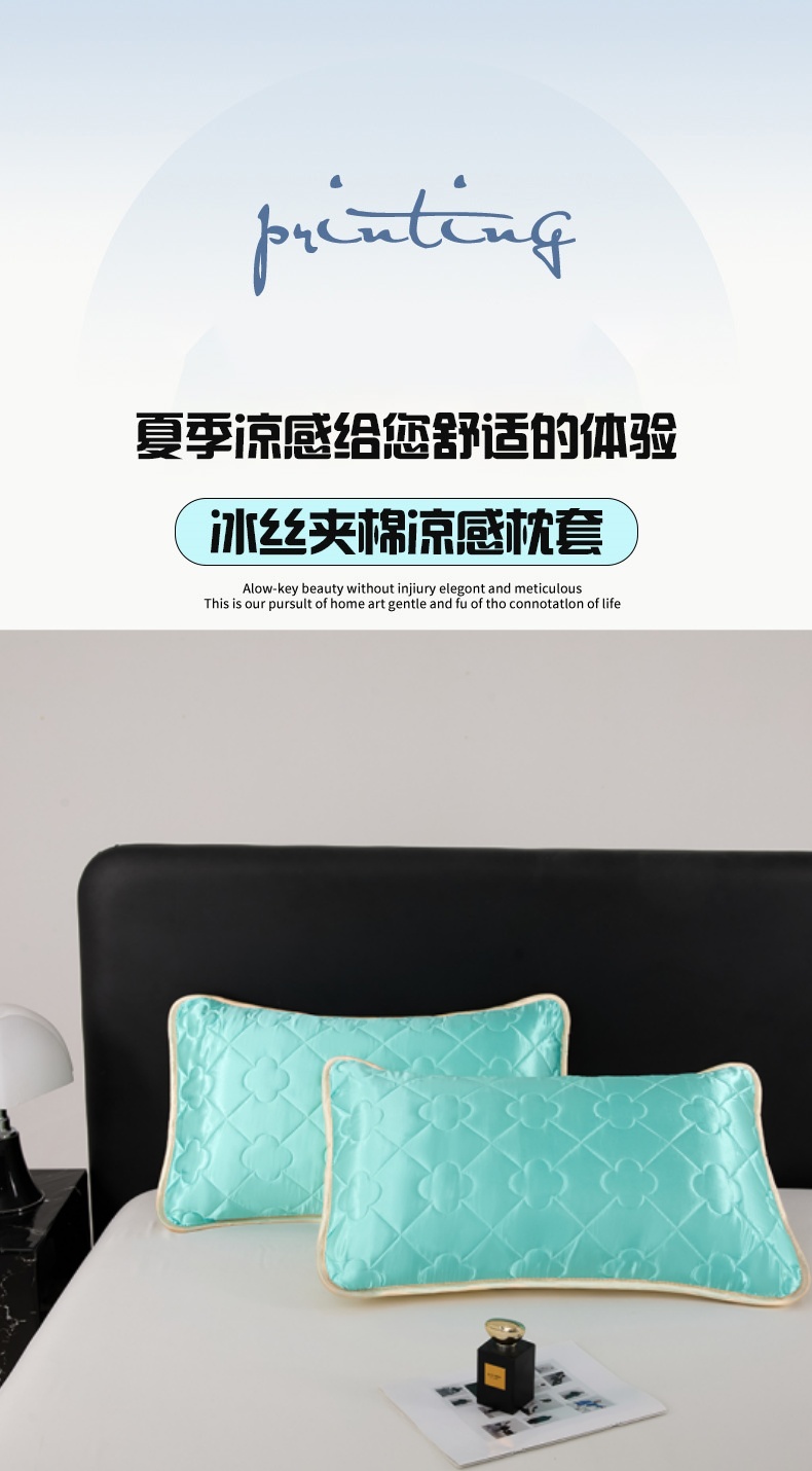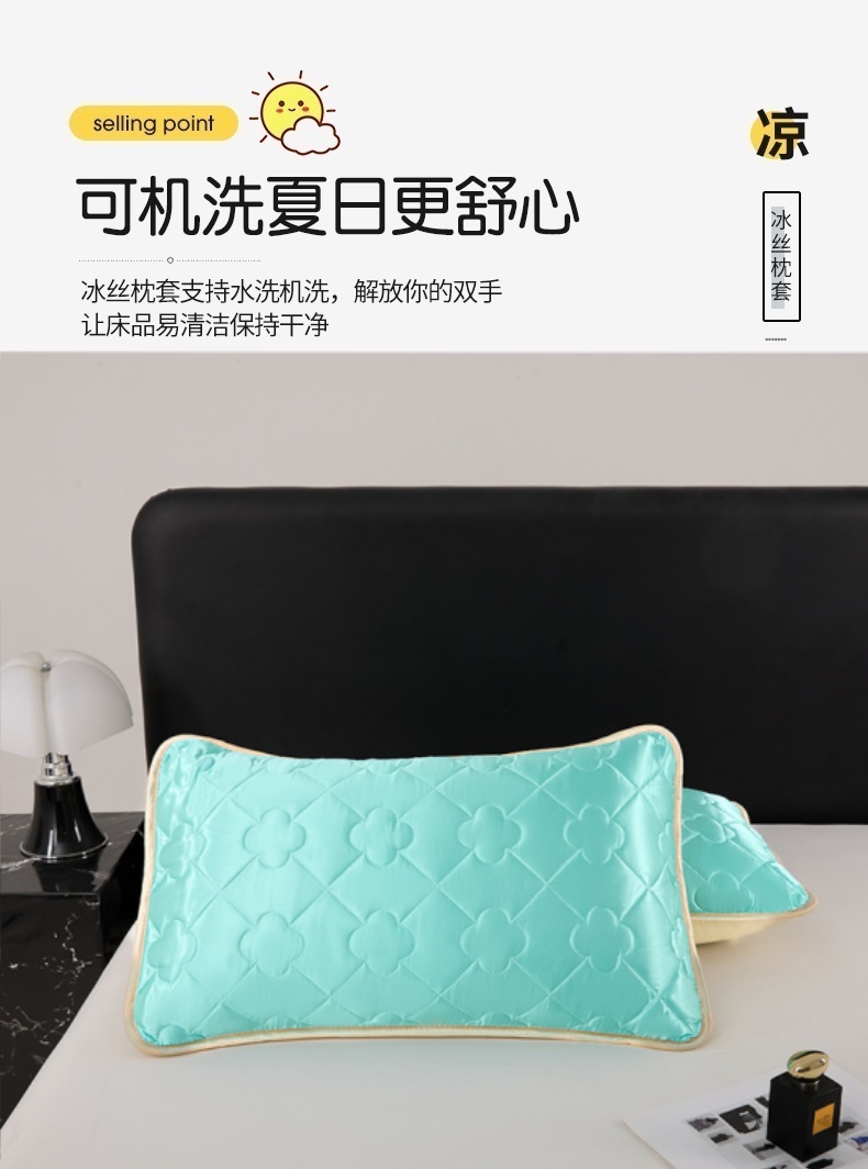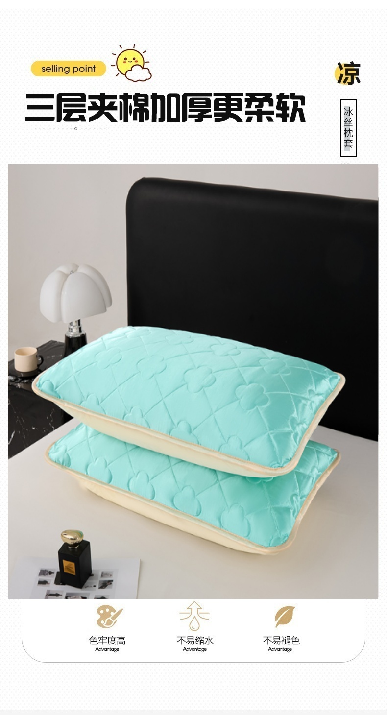 商品名称:梦舒羽 2025新款夏季冰丝凉感夹棉枕套单人一对装可水洗加厚枕头套宿舍48x74cm枕芯套 夹棉加厚-水蓝色