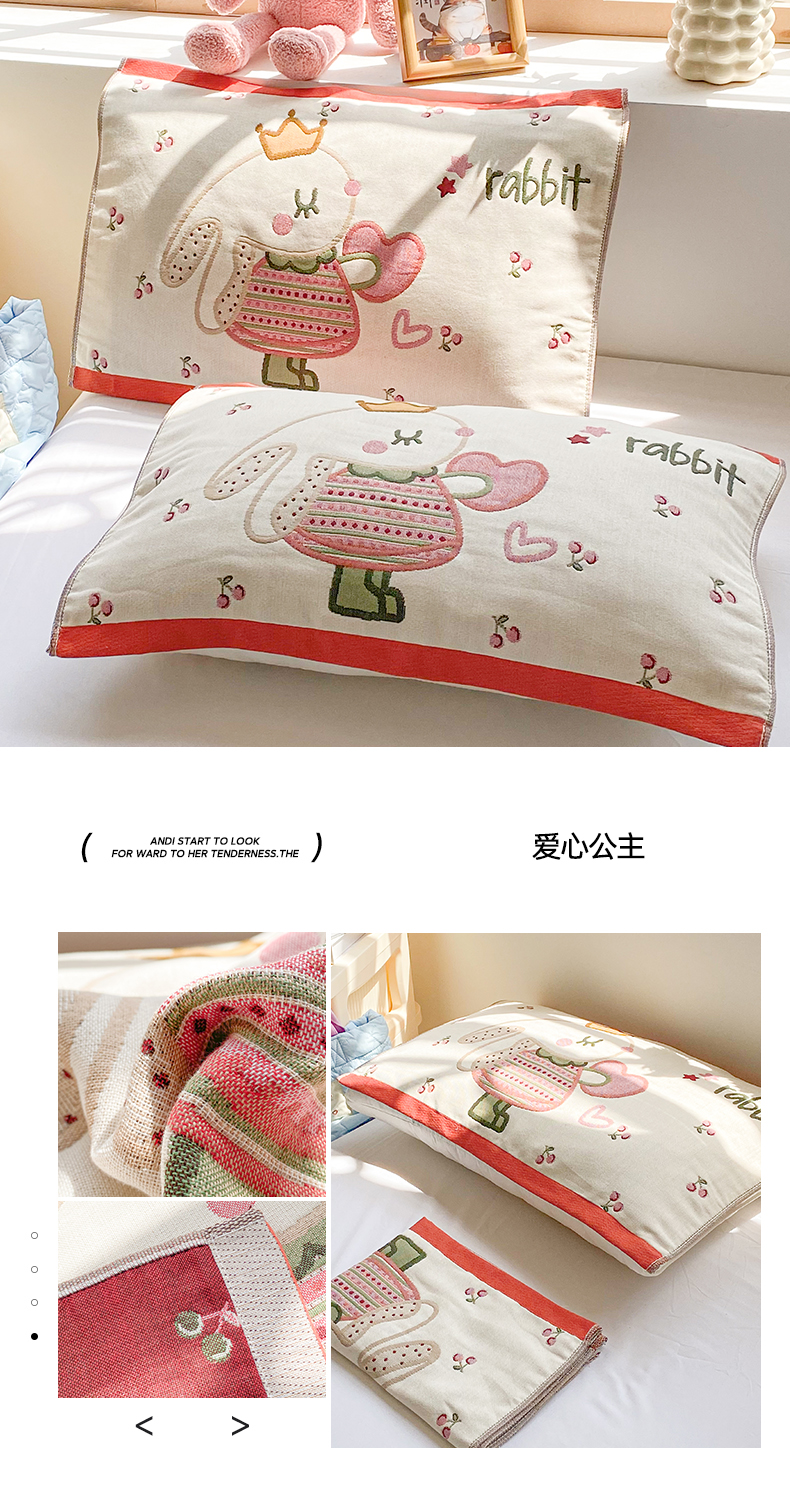 商品名称:美宜家 2025新款40*60儿童纯棉A类纱布枕巾乳胶专用高档枕巾 爱心公主 一对