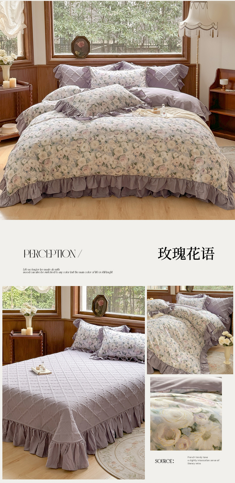 (总)胜权家纺 2025秋冬新款全棉法式13372数码印花夹棉床盖四件套系列,花非花粉,花非花绿,花海绿,锦绣繁华粉,锦绣繁华绿,妙颜粉