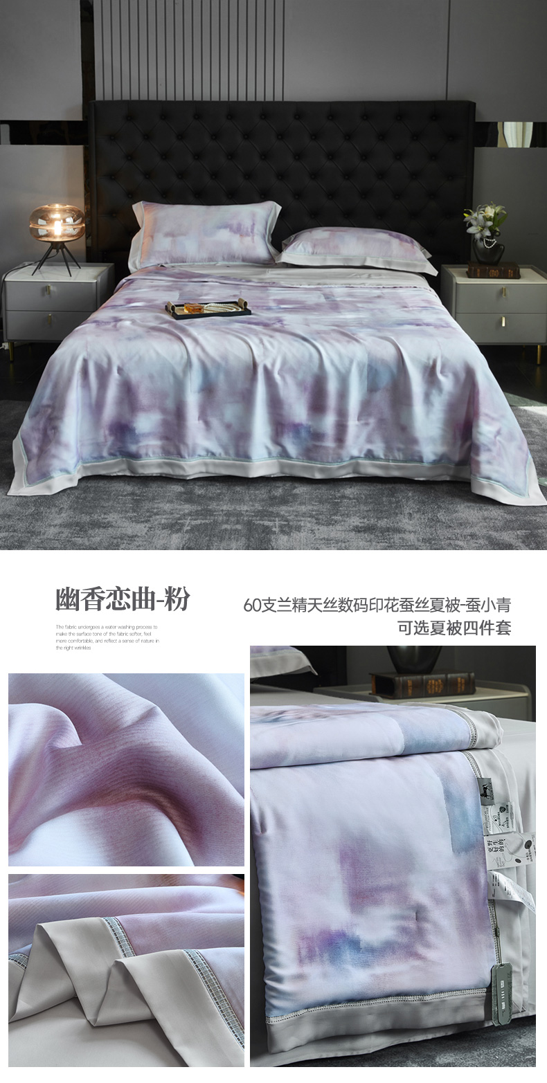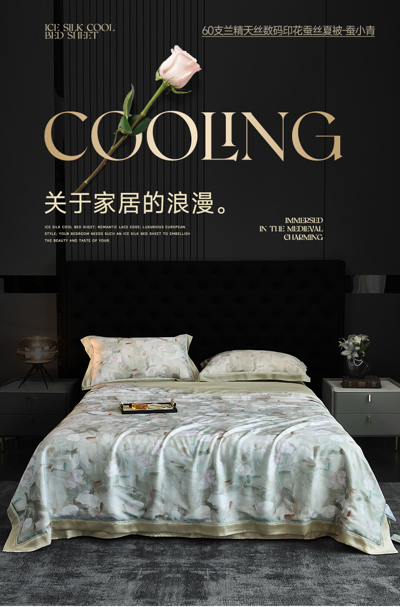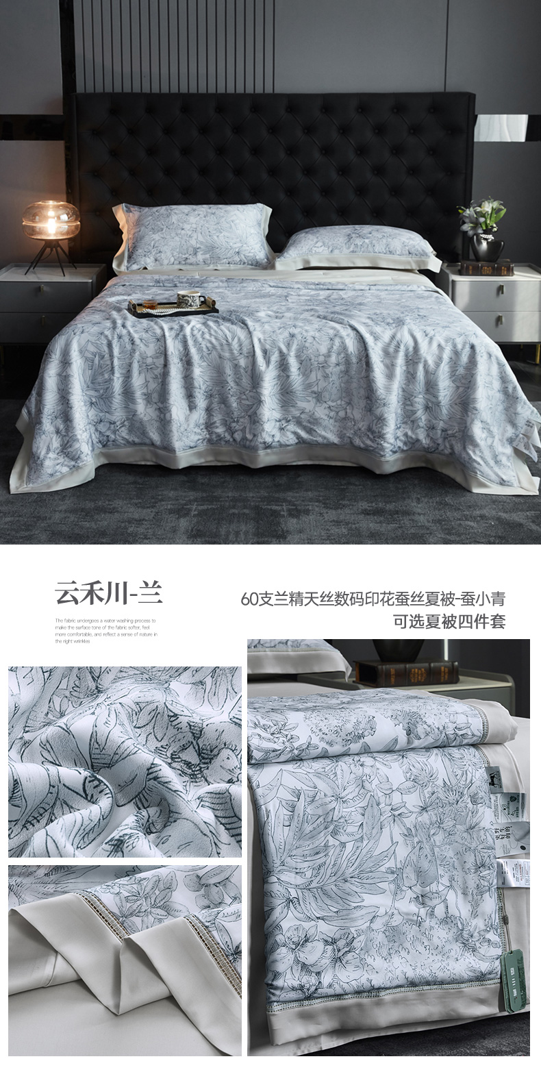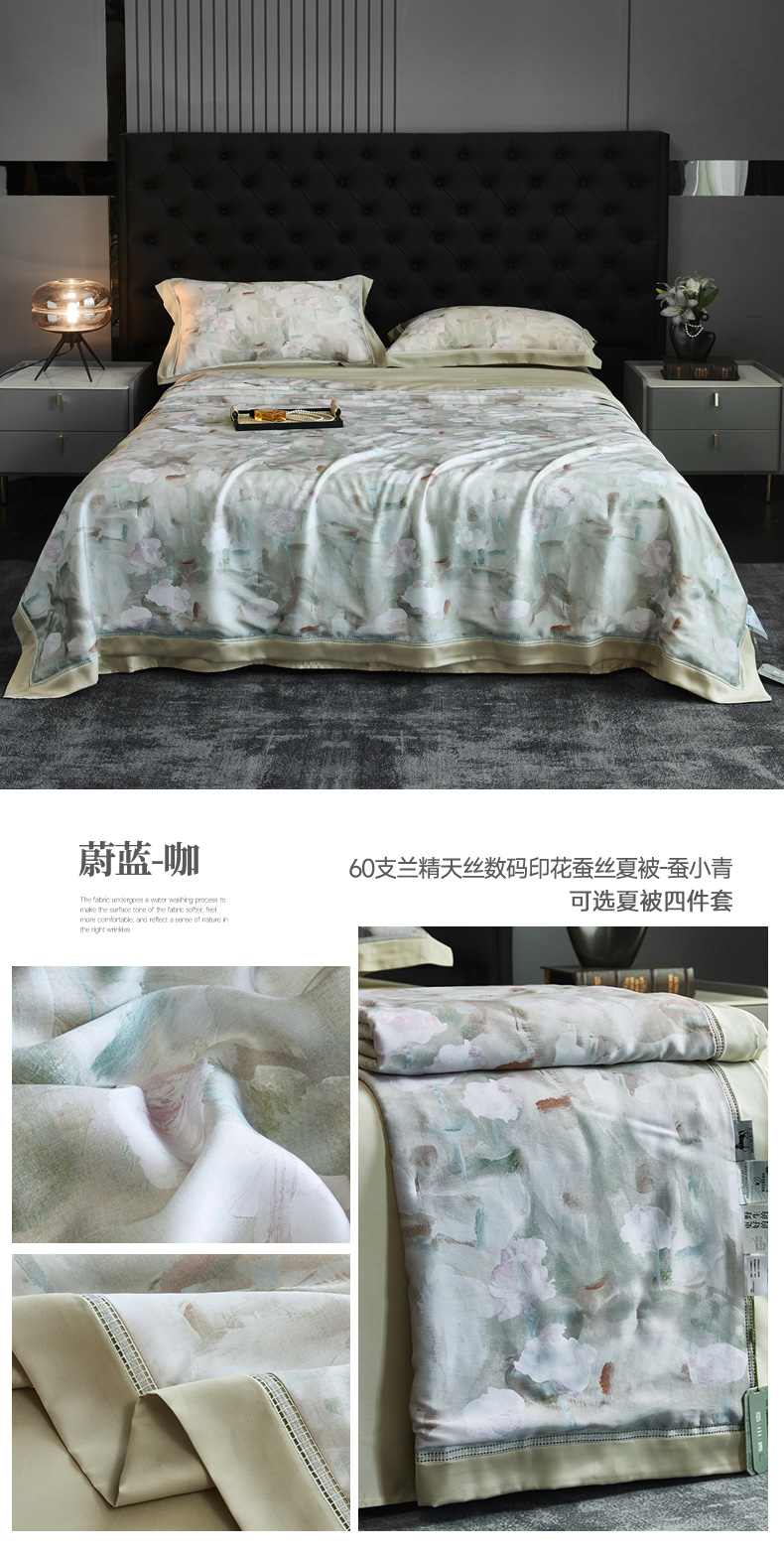 商品名称:桂雅居 2025新款60支兰莱赛尔数码印花蚕丝夏被-蚕小青 云禾川-兰