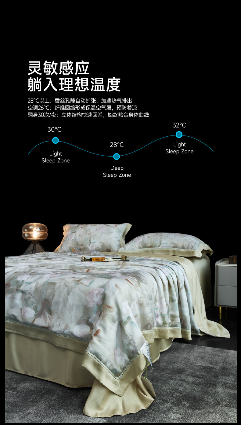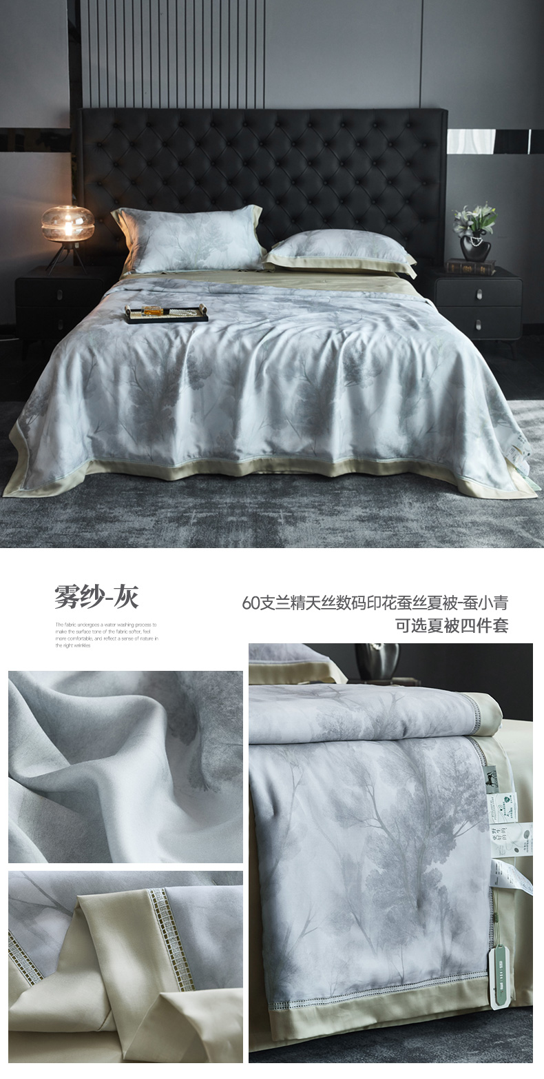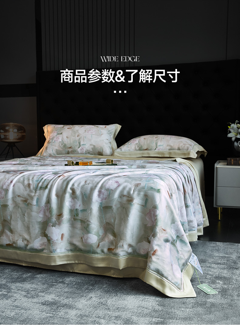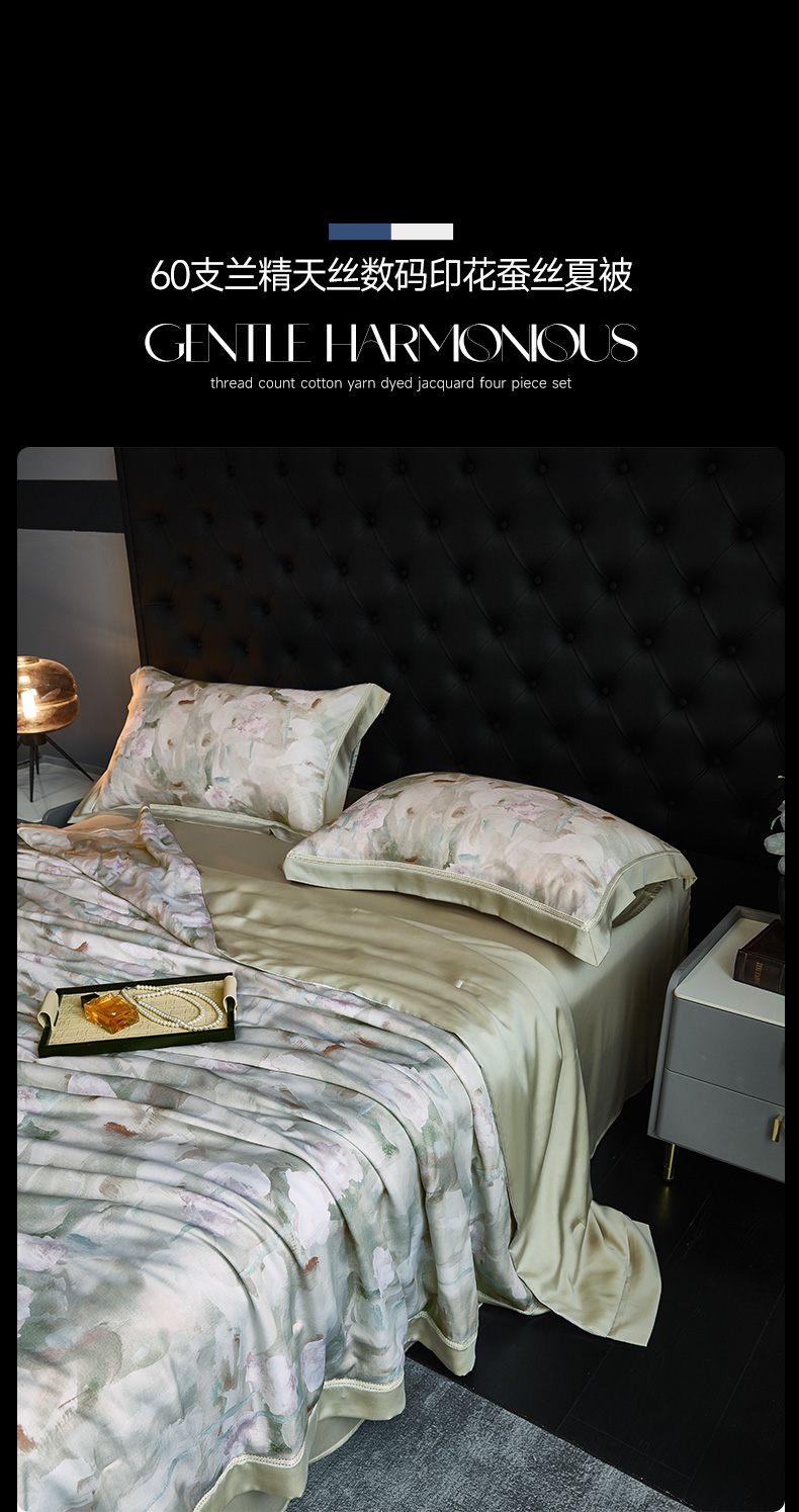 商品名称:桂雅居 2025新款60支兰莱赛尔数码印花蚕丝夏被-蚕小青 云禾川-兰