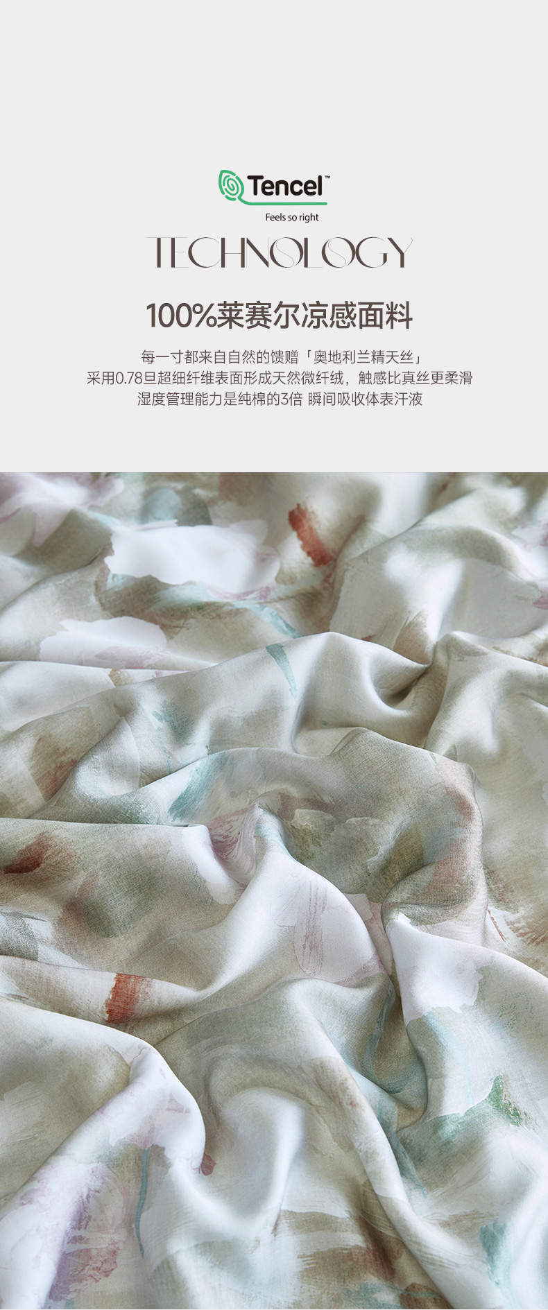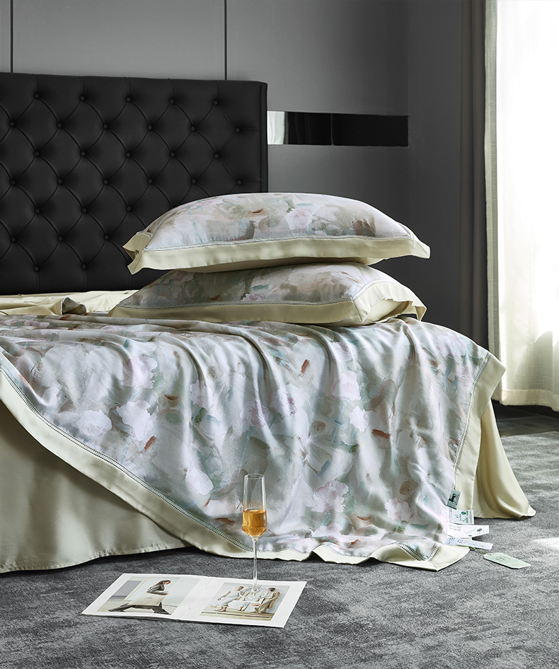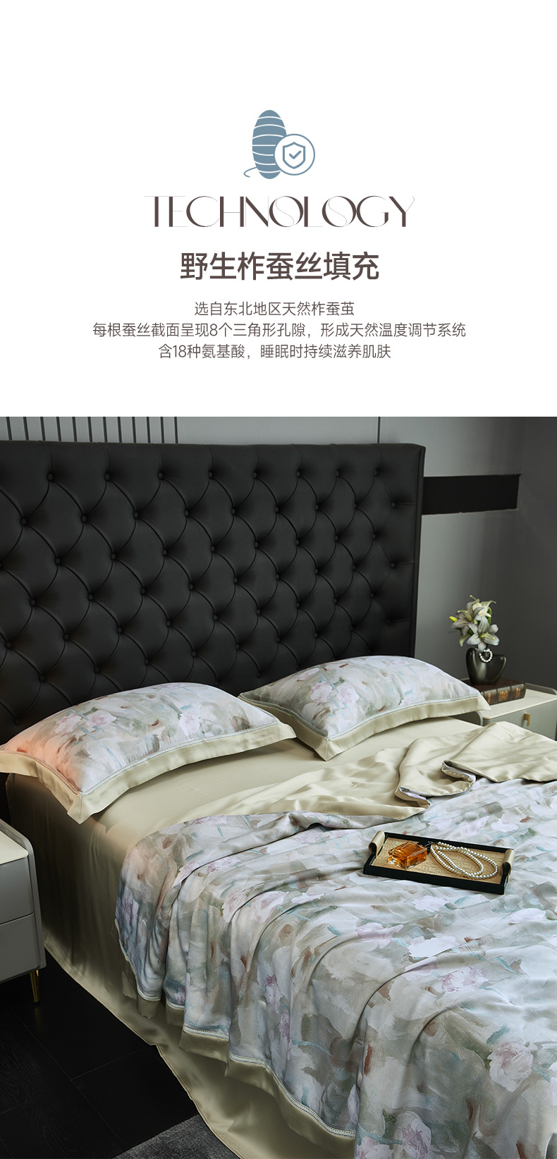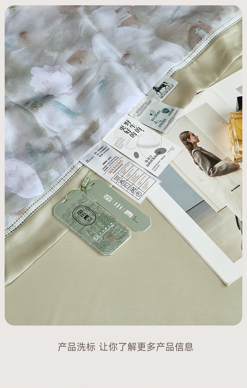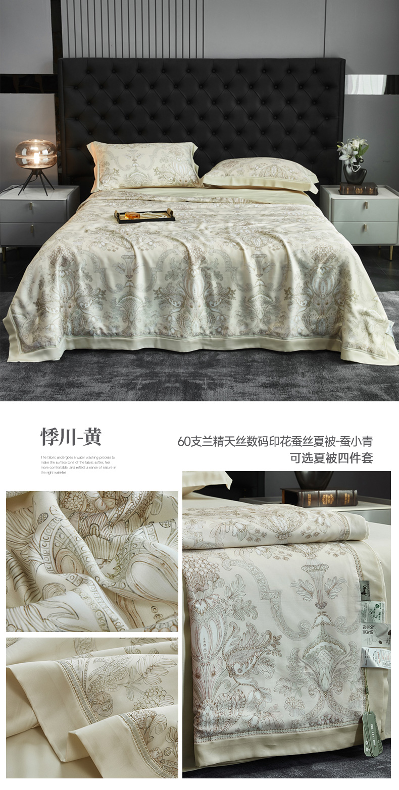 商品名称:桂雅居 2025新款60支兰莱赛尔数码印花蚕丝夏被-蚕小青 云禾川-兰