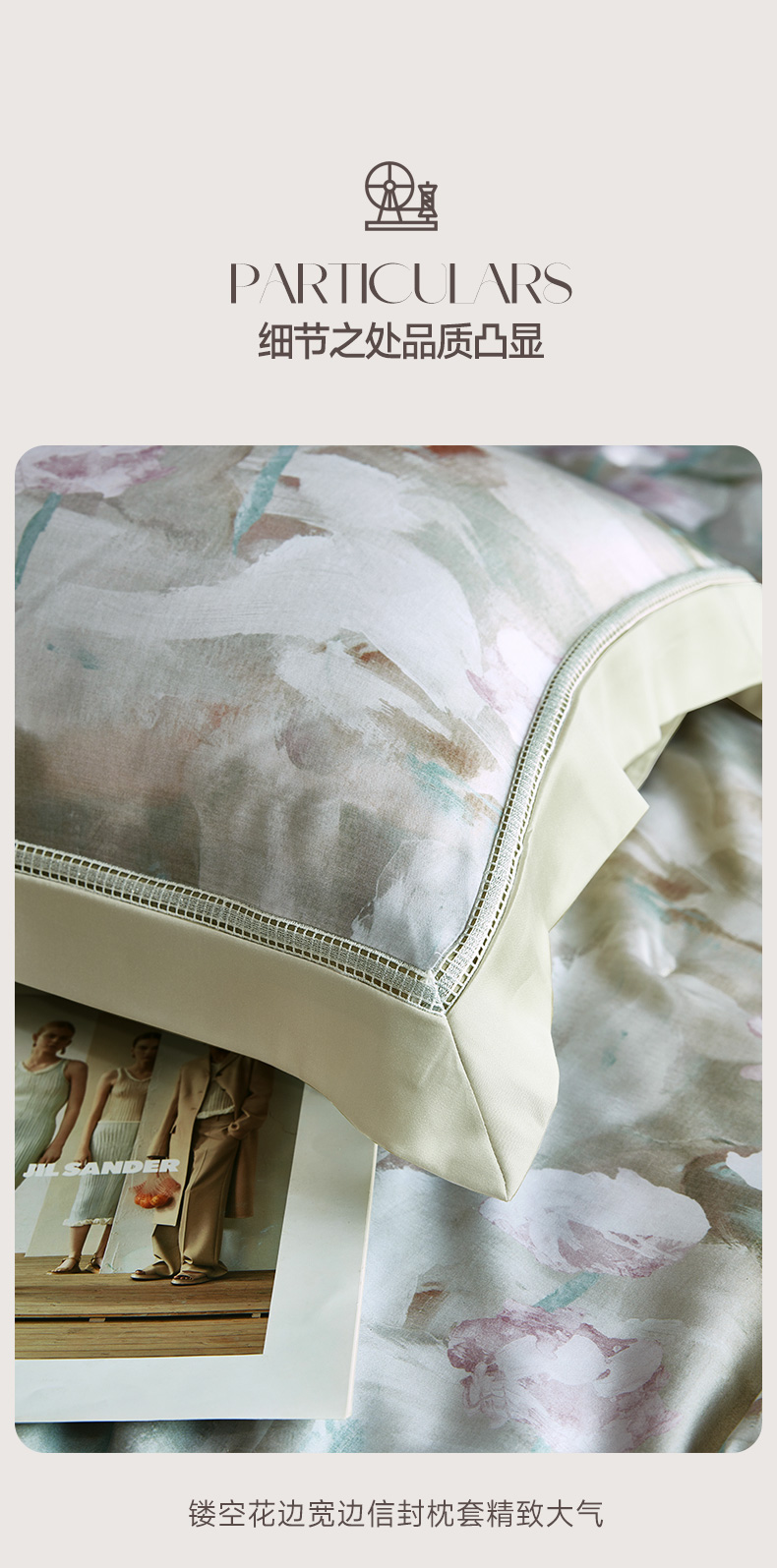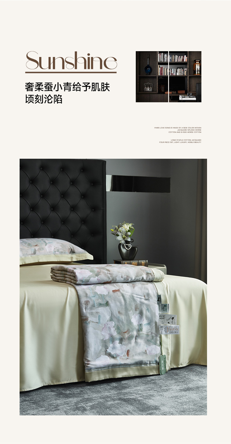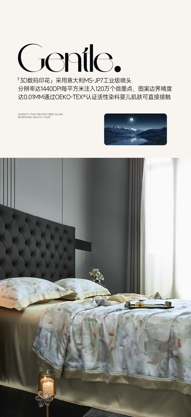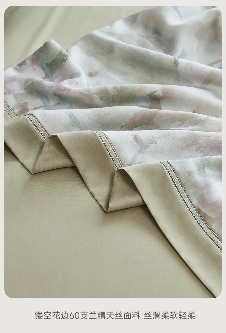 商品名称:桂雅居 2025新款60支兰莱赛尔数码印花蚕丝夏被-蚕小青 云禾川-兰