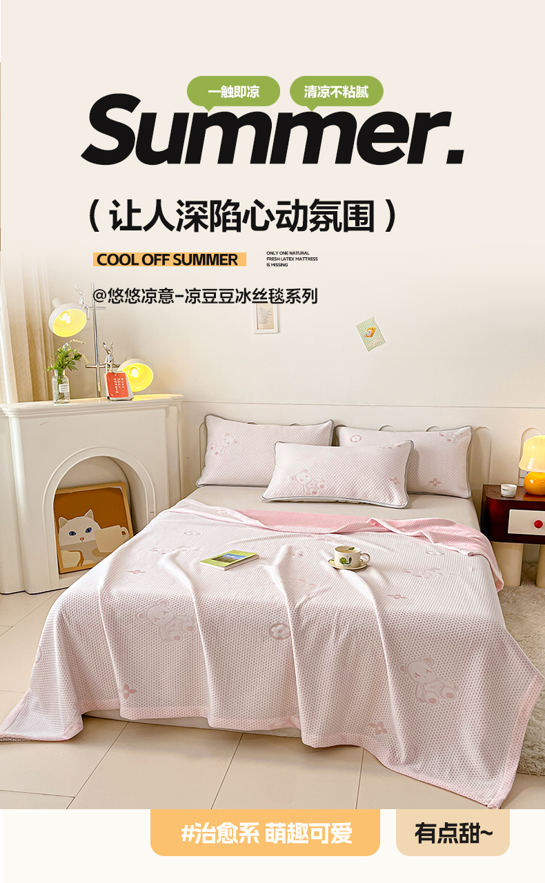 卡伦家纺2025凉豆豆冰丝毯系列 小熊——粉