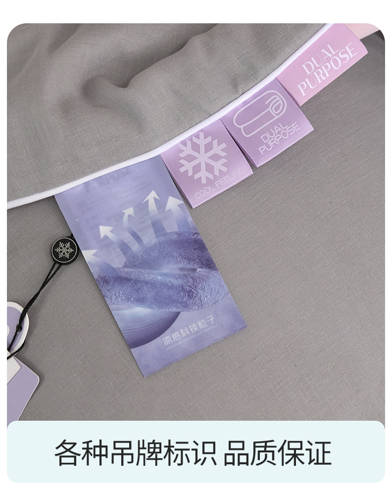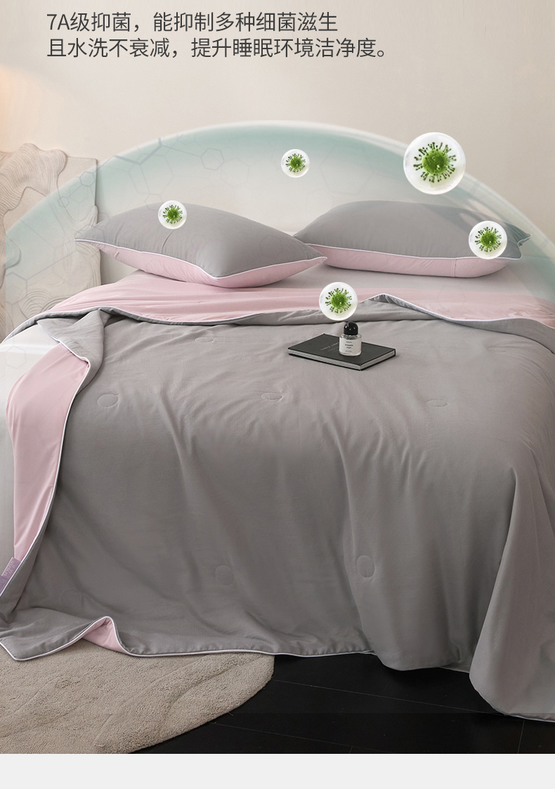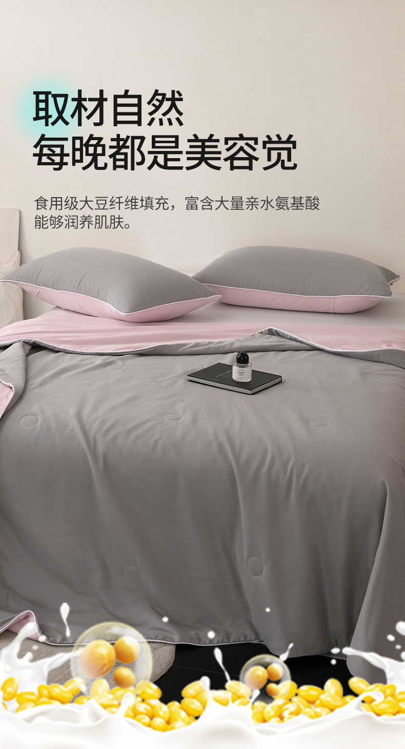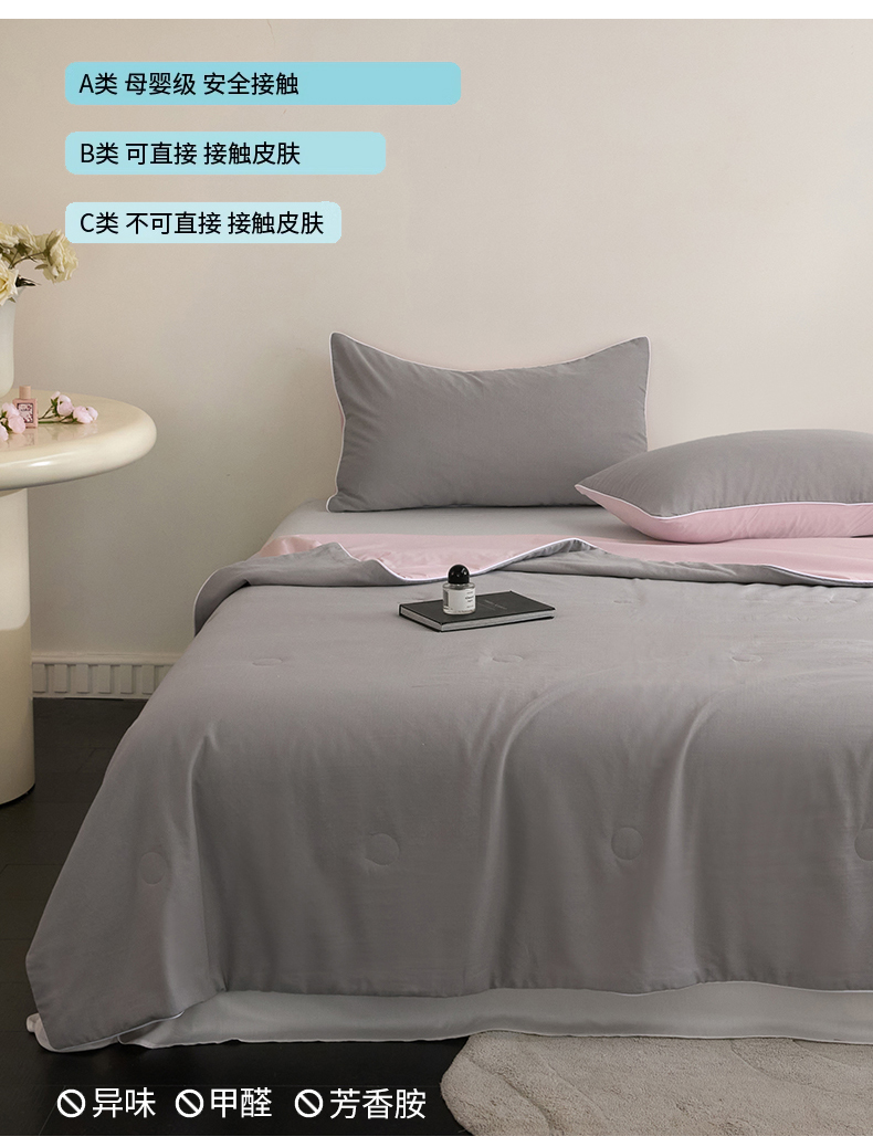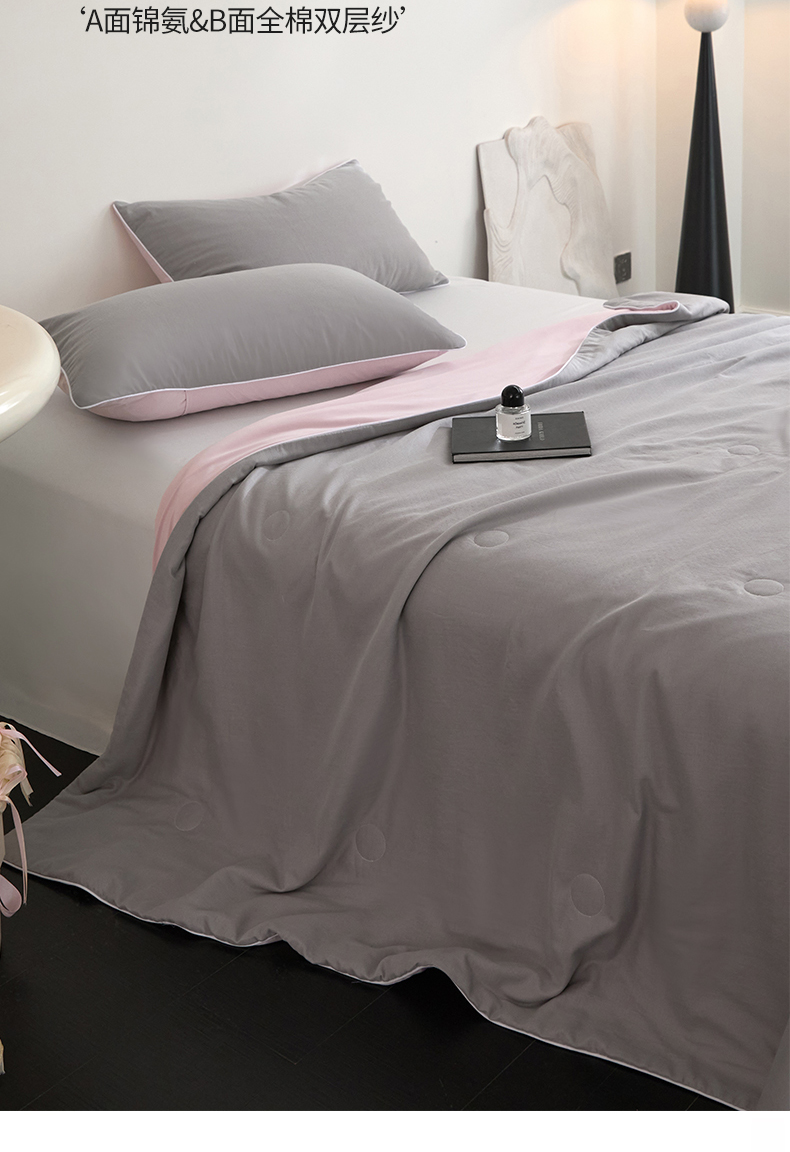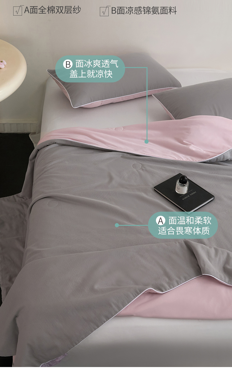 商品名称:头等舱 2025新款锦氨&全棉双层纱一被两用A类20大豆7A抗菌夏被(配礼盒) 浅灰豆沙