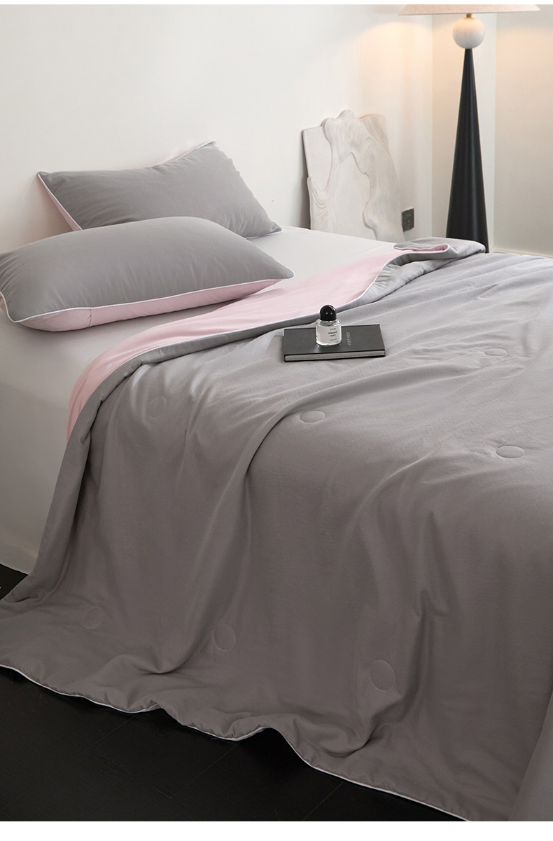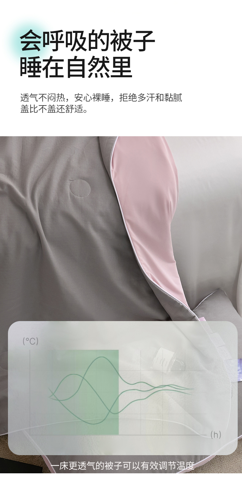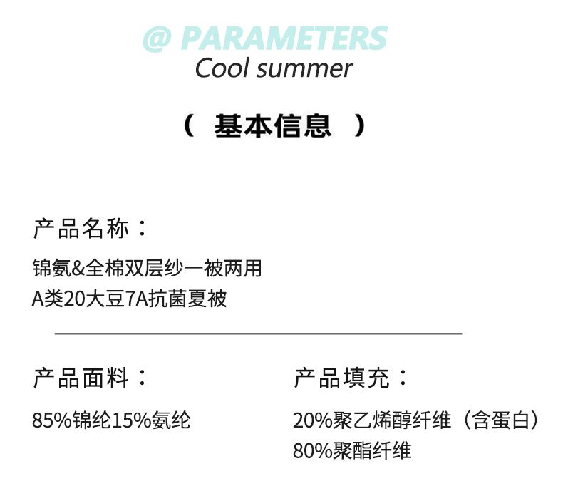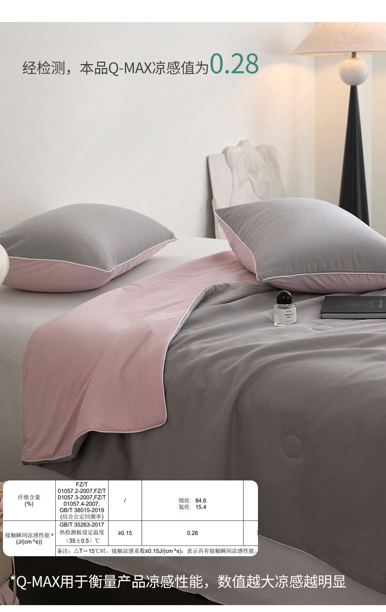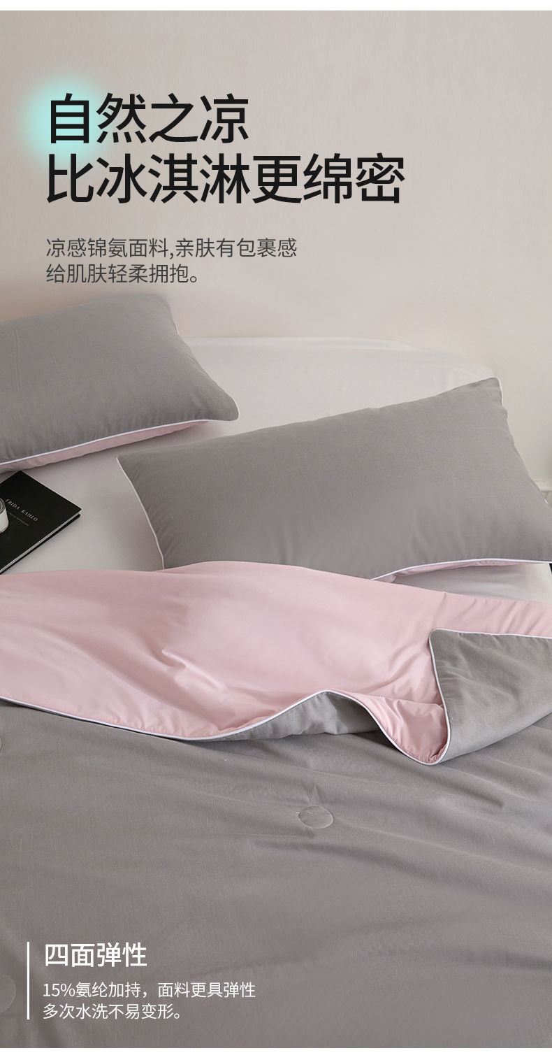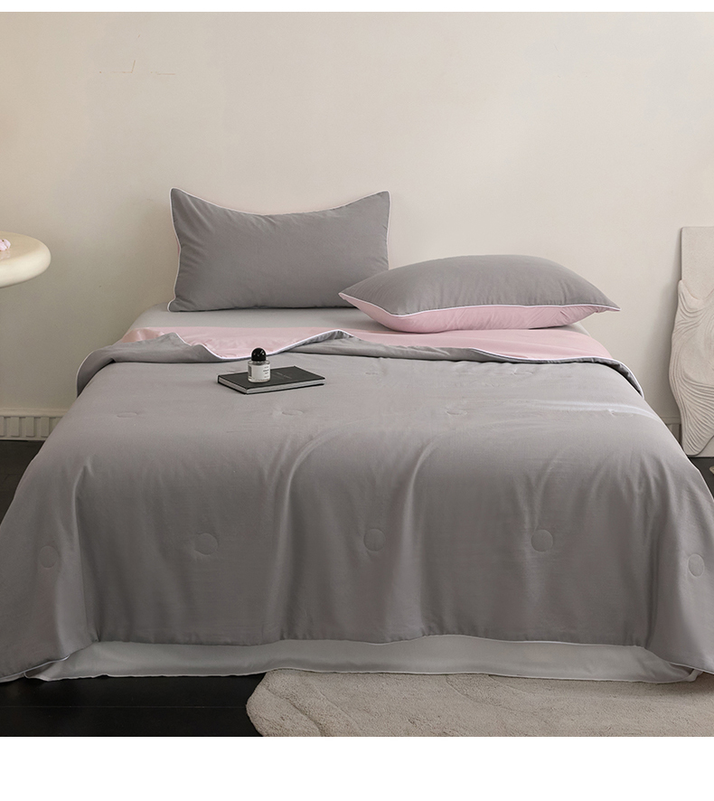 商品名称:头等舱 2025新款锦氨&全棉双层纱一被两用A类20大豆7A抗菌夏被(配礼盒) 浅灰豆沙