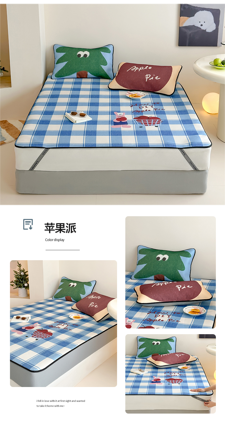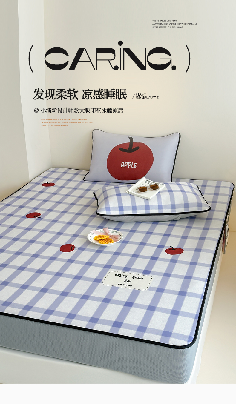 商品名称:三味舒屋 2025新款小清新设计师款印花冰藤席凉席席子 苹果派 床笠