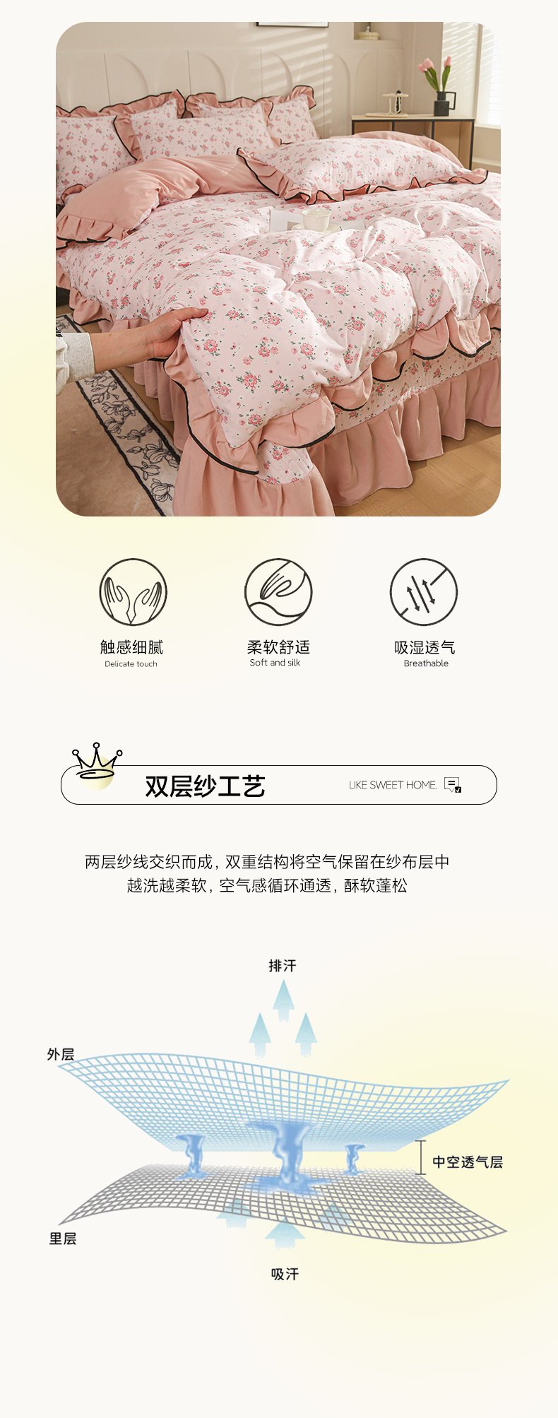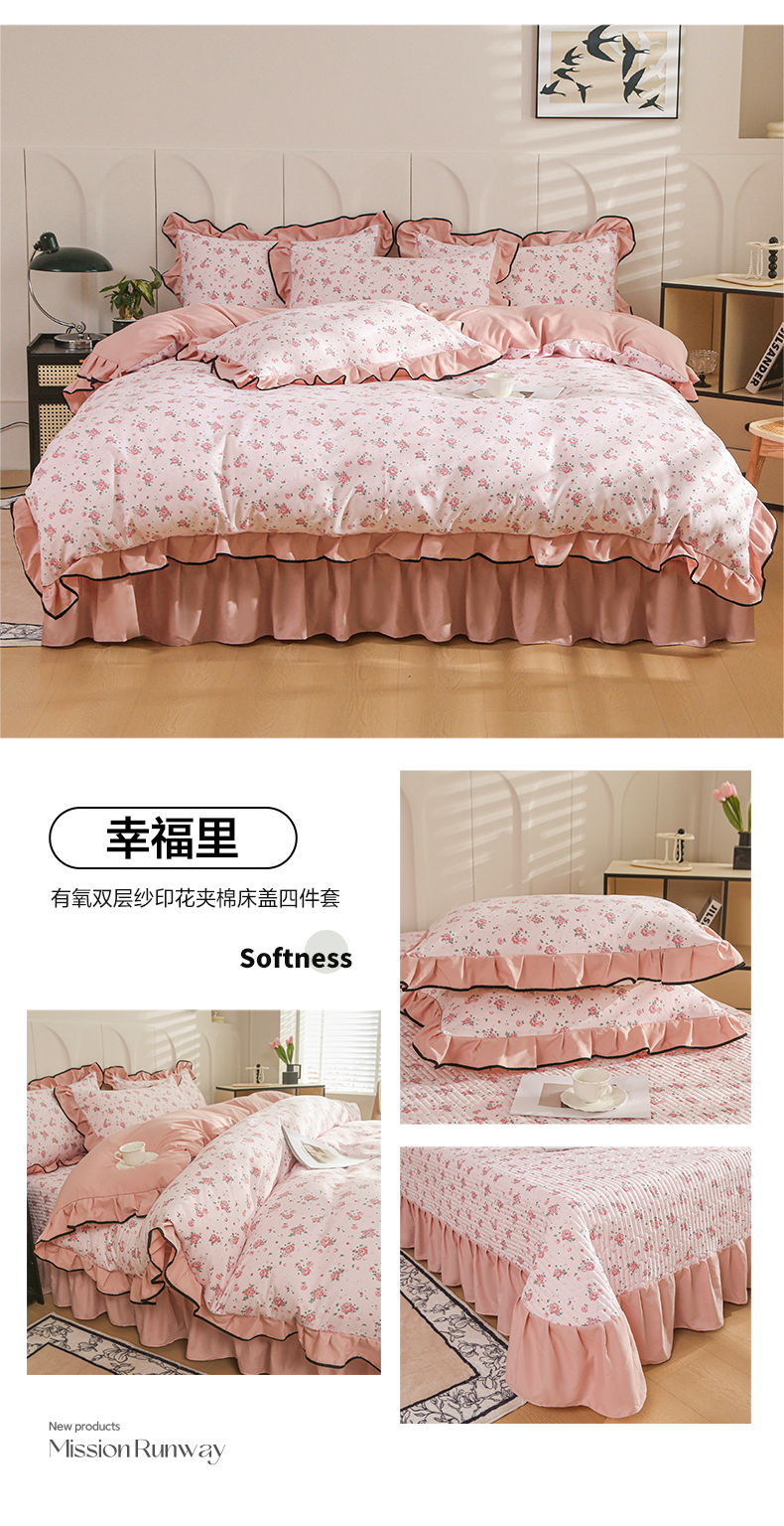 当前位置: 91家纺网 > 商品网购 > 床品套件 > 四件套 > 其它四件套 > 铠畅家纺 2025新款有氧双层纱印花夹棉床盖四件套-终版 幸福里