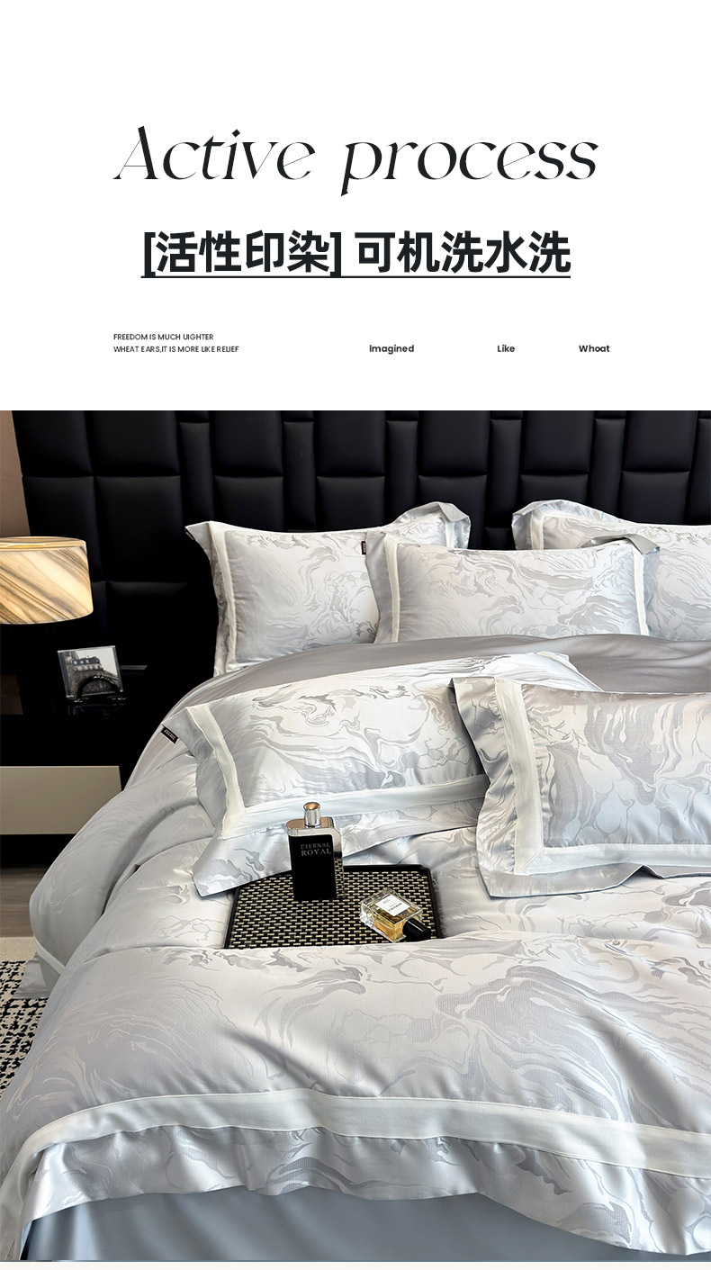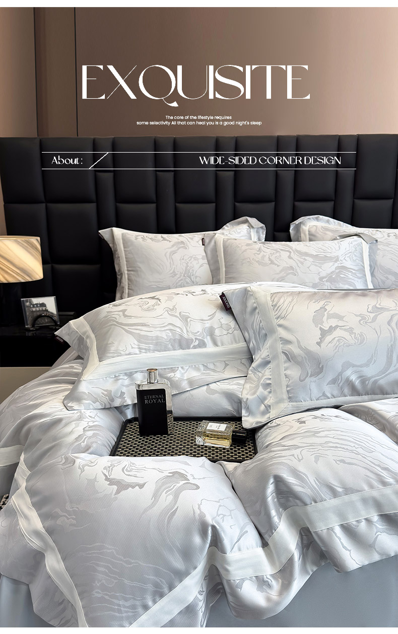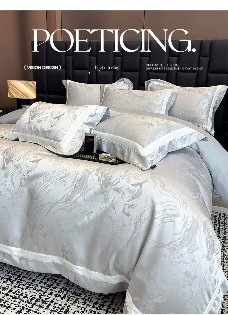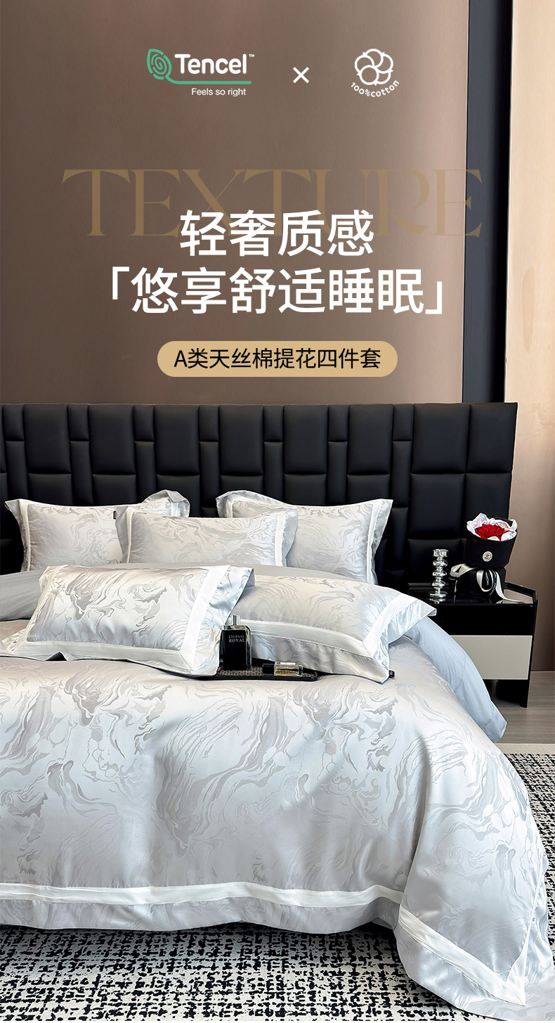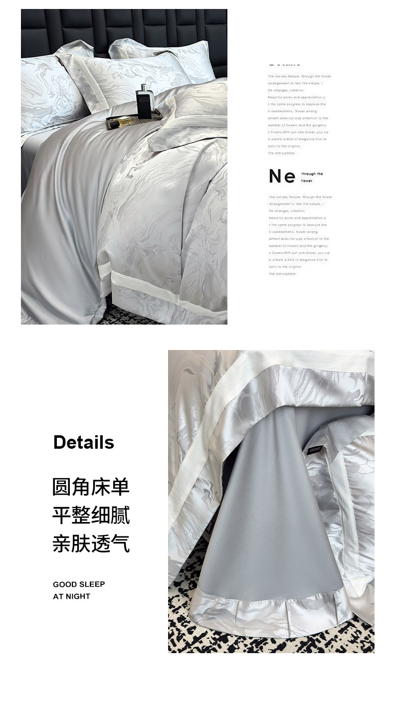 商品名称:乔利·卡沃 2025新品床上用品高端A类100支天丝棉贡缎提花四件套全棉纯棉长绒棉夏季轻奢真丝全工艺 南溪-银衫灰