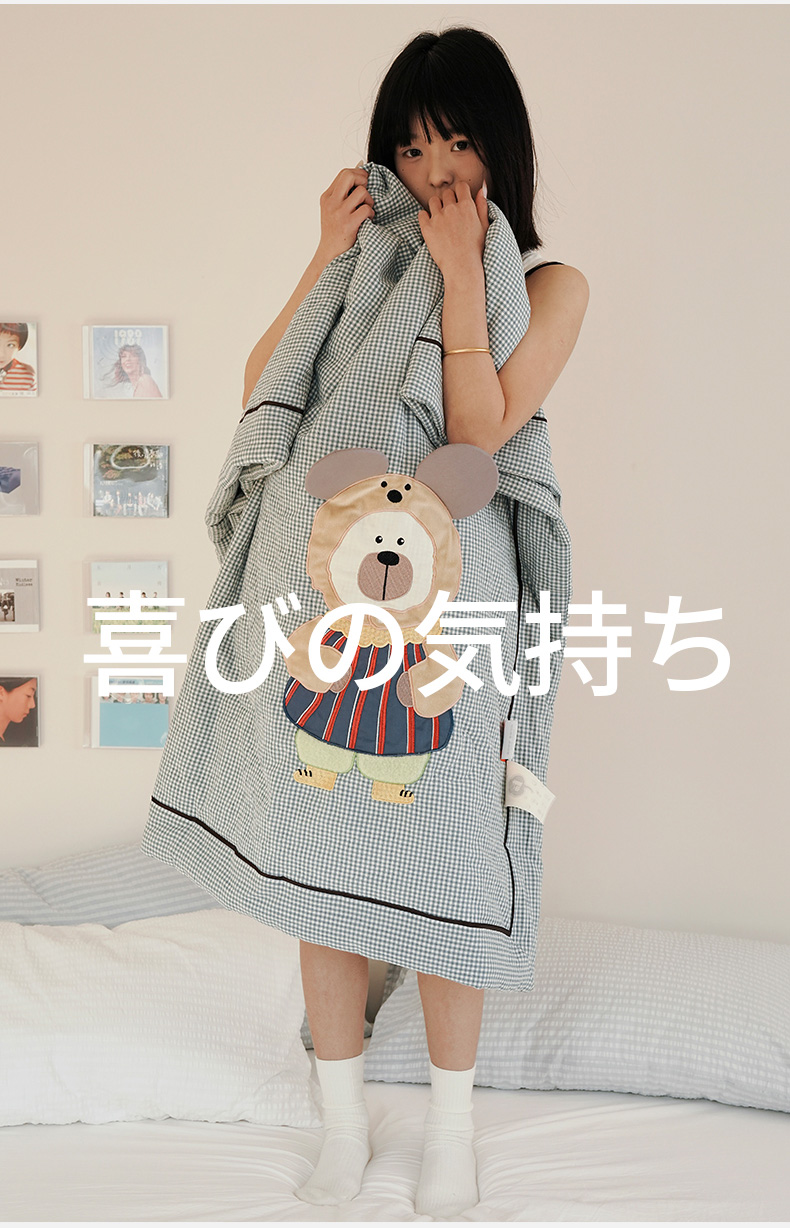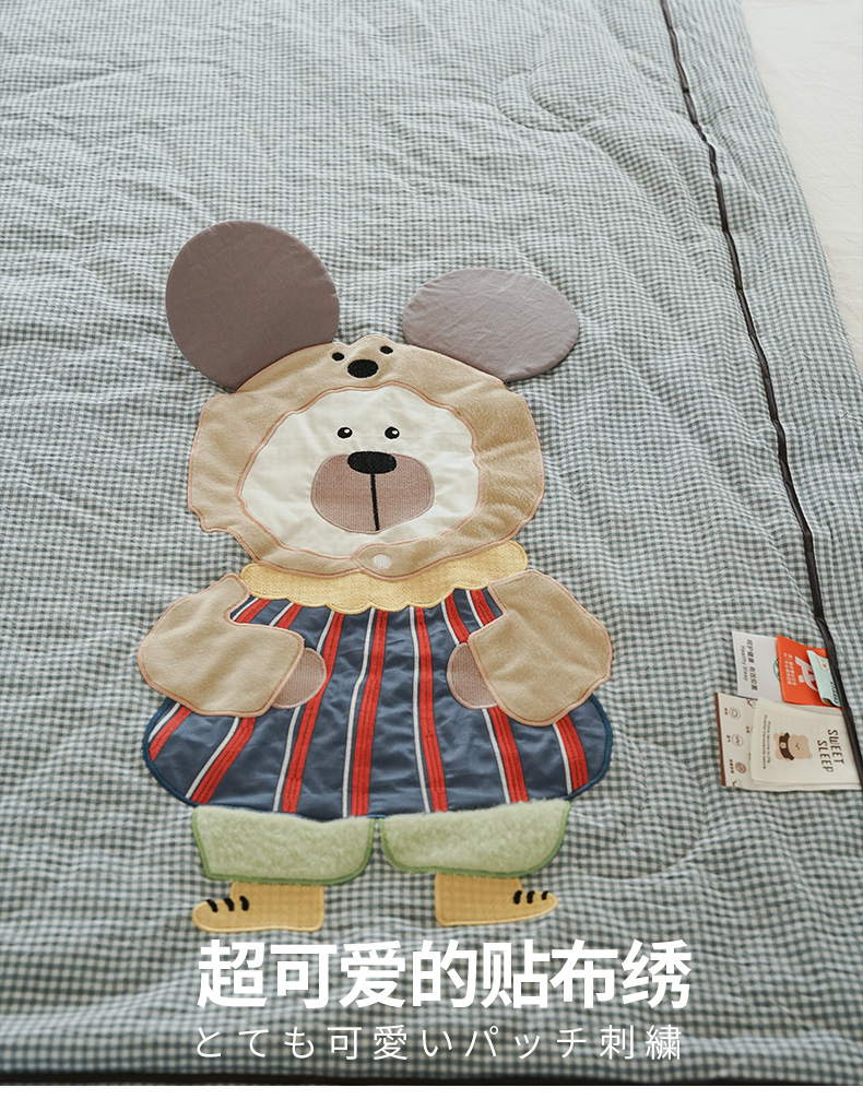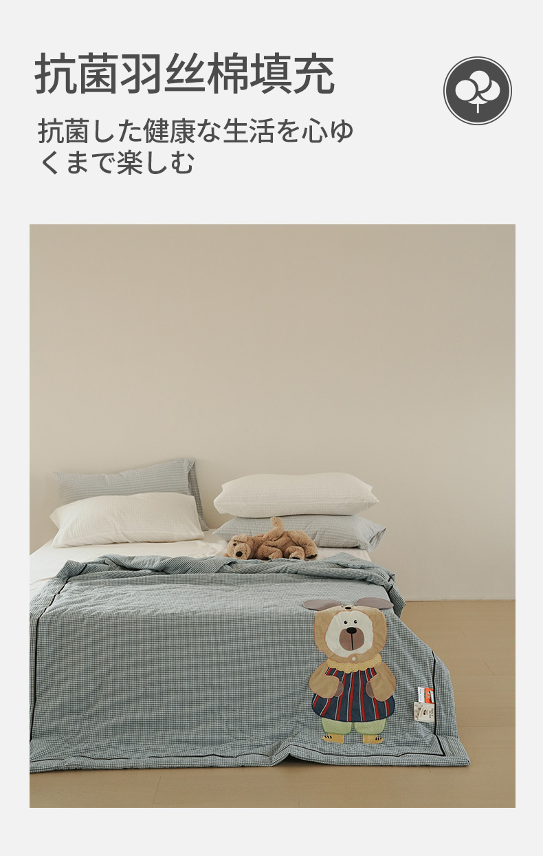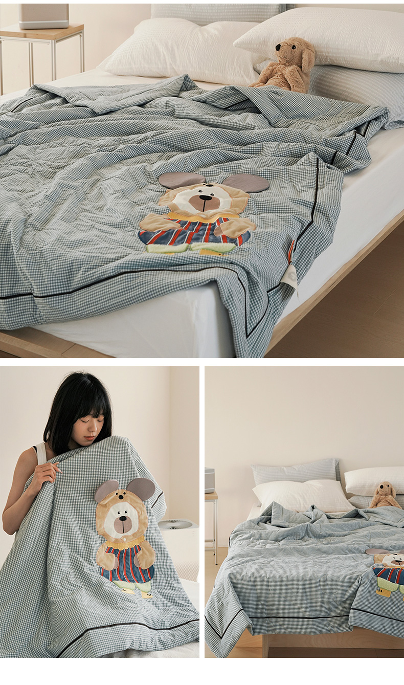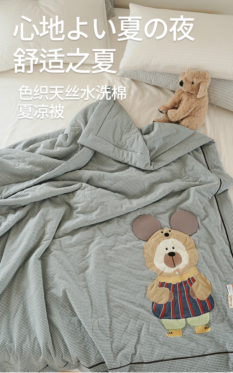 • 91家纺网 家纺一手货源 找家纺 喜多兔儿童家纺 2025新款色织天丝水洗棉夏被被子被芯 蓝格太阳小熊-胶片风