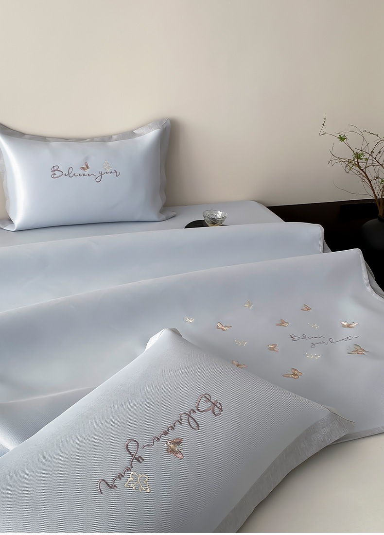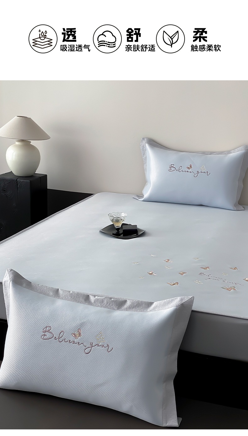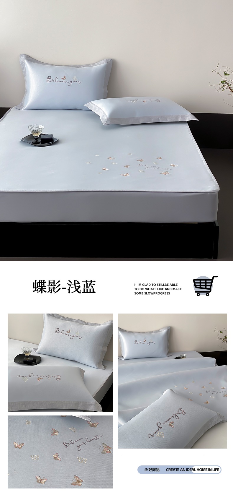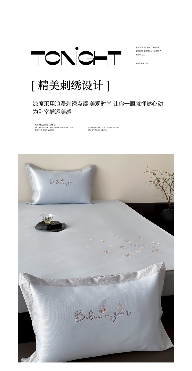 商品名称:由有家居 2025新款7A级高精密A类抗菌色织提花进口刺绣冰丝凉席-蝶影 蝶影-浅蓝