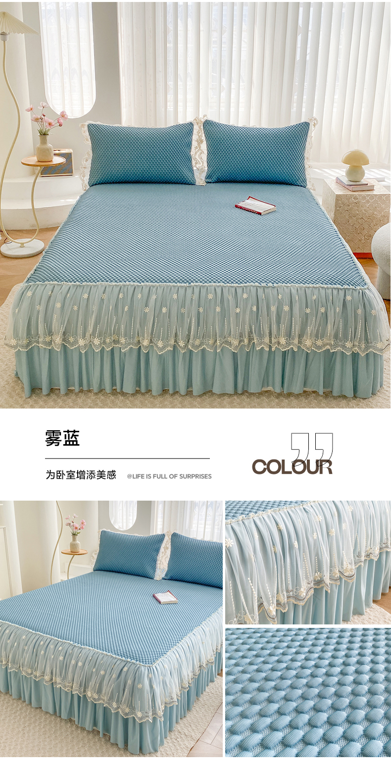 商品名称:美伦美焕 2025新款凉席冰豆豆床裙款凉席 雾蓝