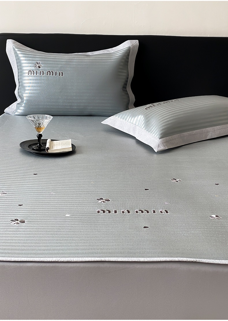 (总)由有家居 2025新款轻奢7A高精密抗菌可水洗色织提花进口刺绣冰丝凉席-森恋,森恋-灰,森恋-粉,森恋-咖,森恋-蓝,森恋-绿