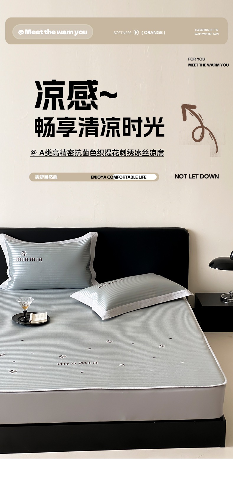 (总)由有家居 2025新款A类轻奢高精密7A抗菌色织可水洗冰丝床笠款凉席三件套,艾琳,都市,梵希,风尚,格调,华尔兹,极光,卡诺,洛可,觅,魔方,星球