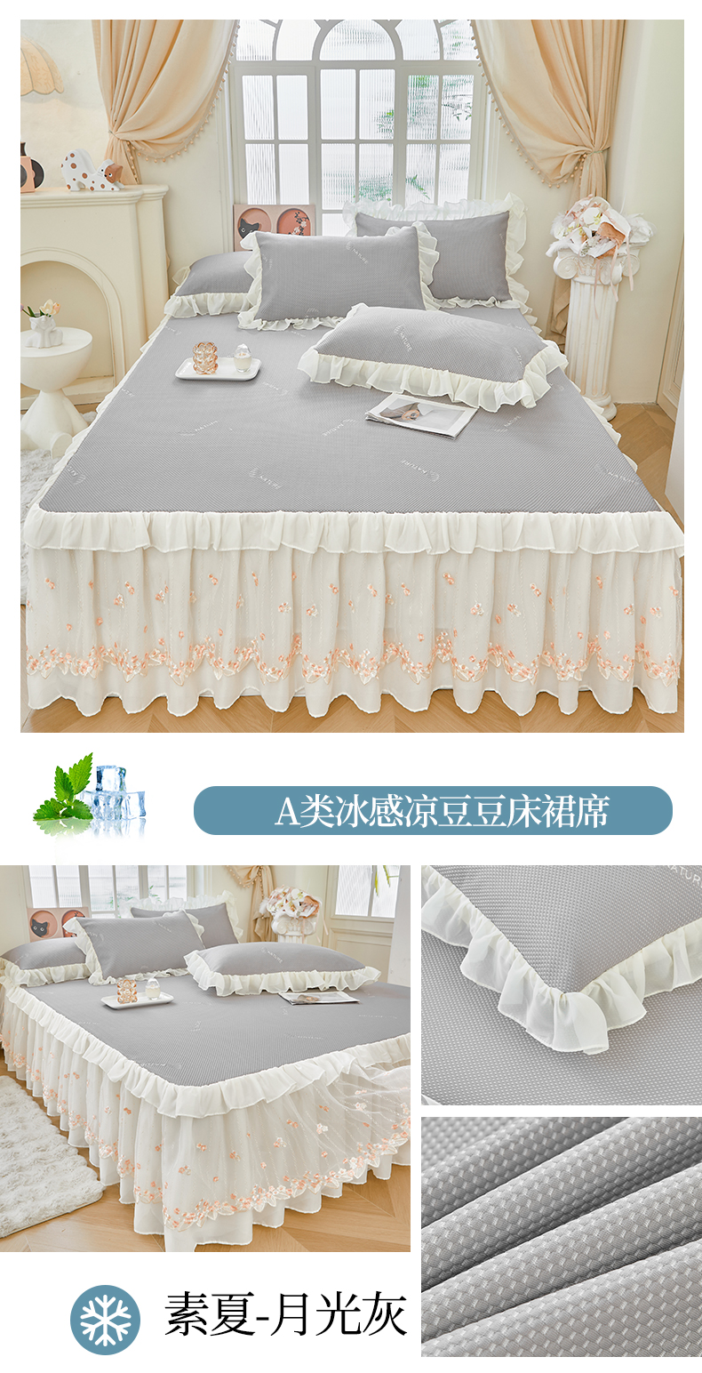 商品名称:锦格2025年新款A类冰感凉豆豆床裙席 素夏-月光灰