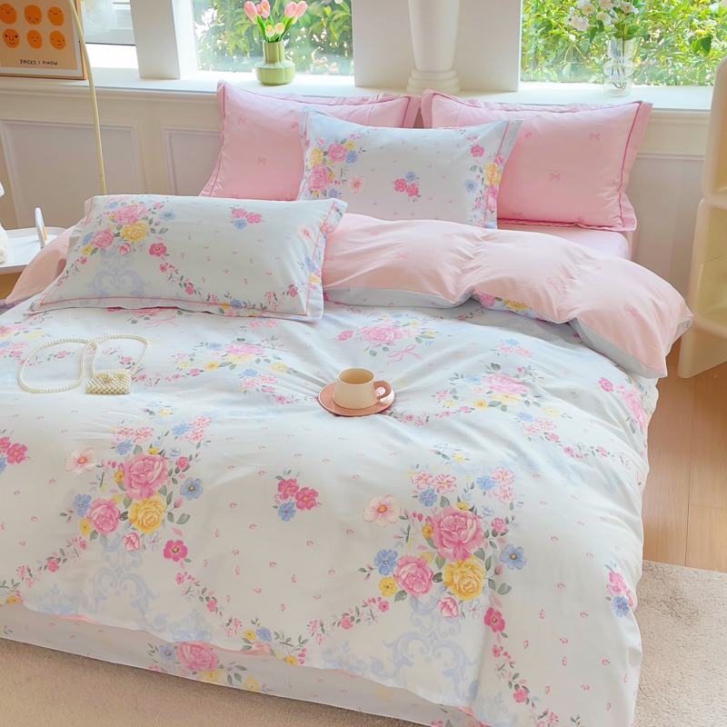 商品名称:铭博家纺 2025新款直播爆款100%全棉吊边一字绣工艺款13070印花全棉四件套 苏沐花谣