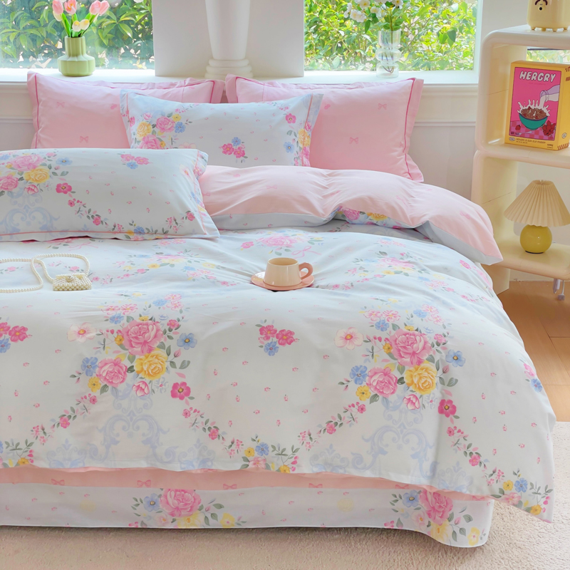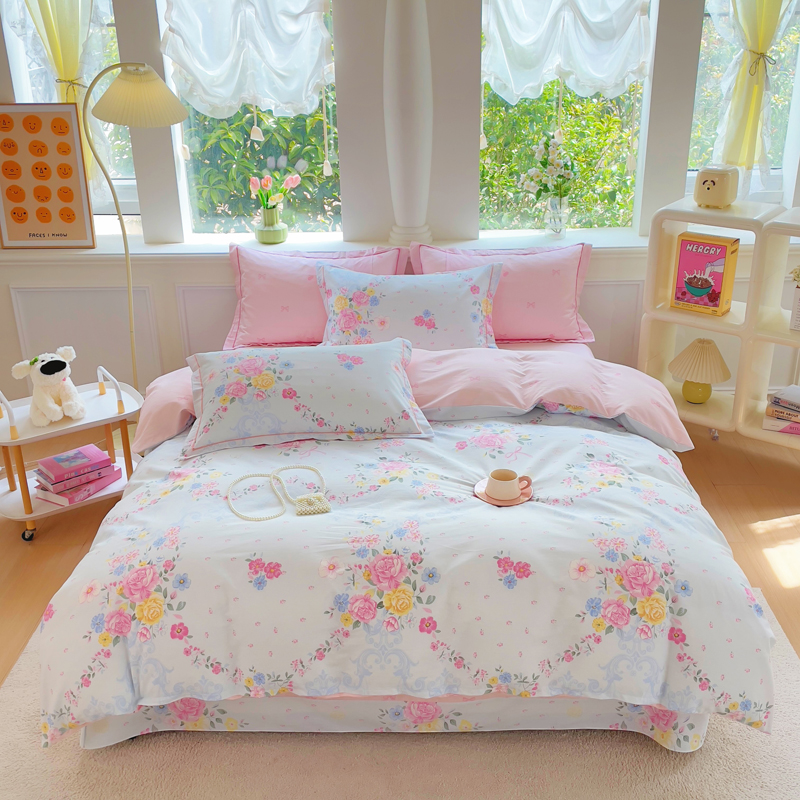 铭博家纺 2025新款直播爆款100%全棉吊边一字绣工艺款13070印花全棉四件套 苏沐花谣