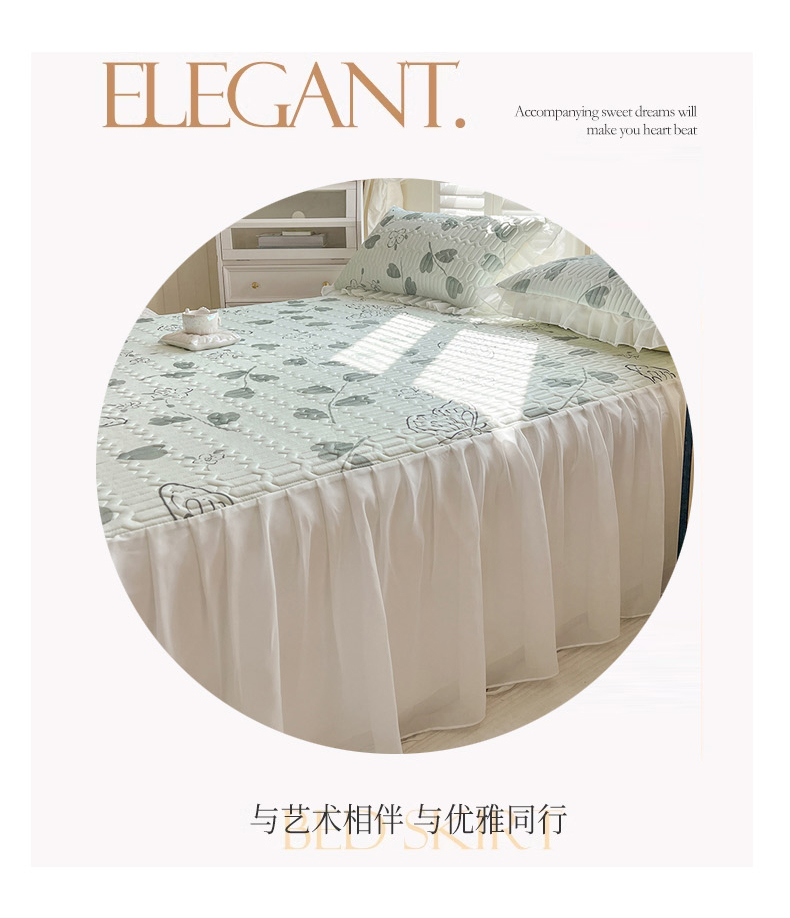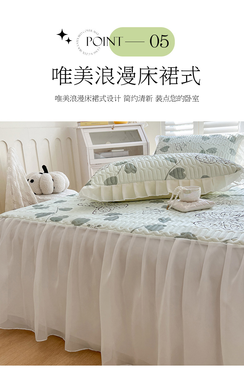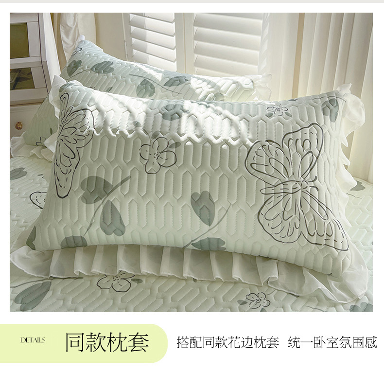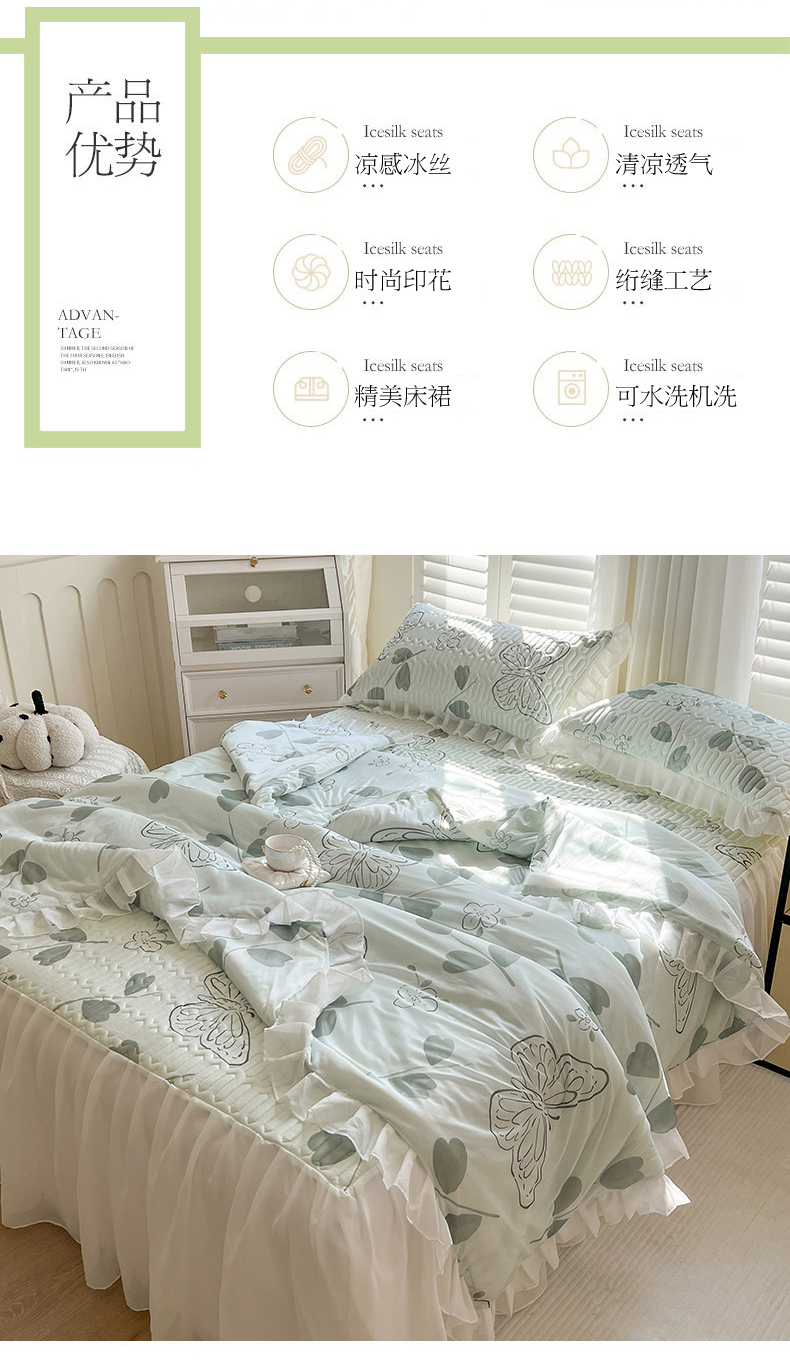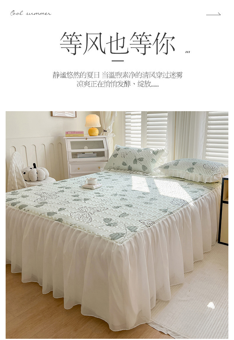 商品名称:慕澄2025新款小清新印花凉感丝花床裙款乳胶凉席 绿色蝶