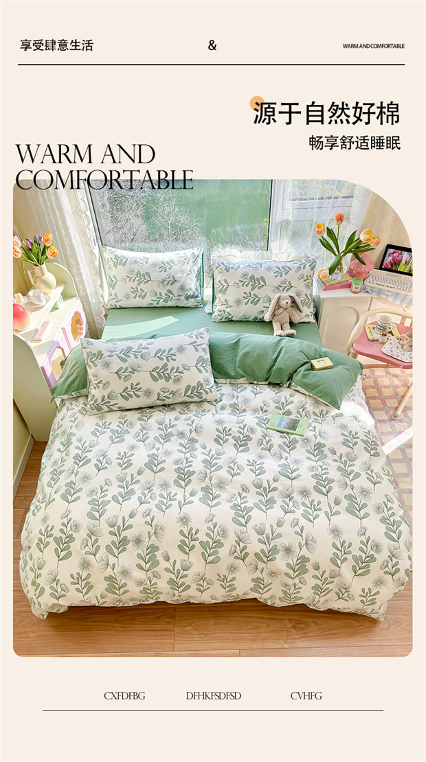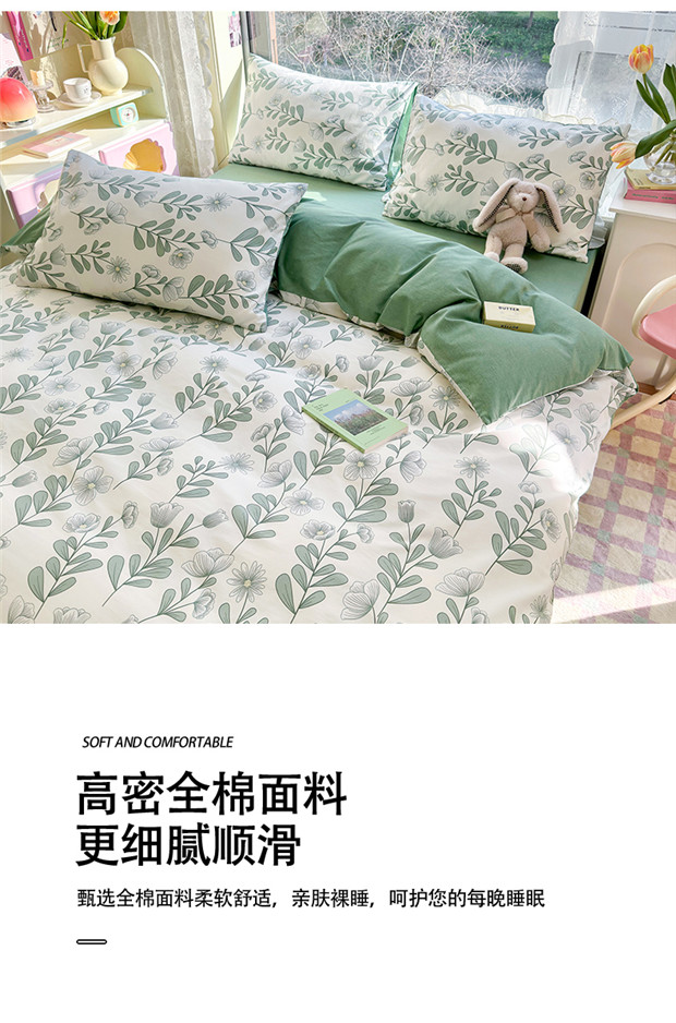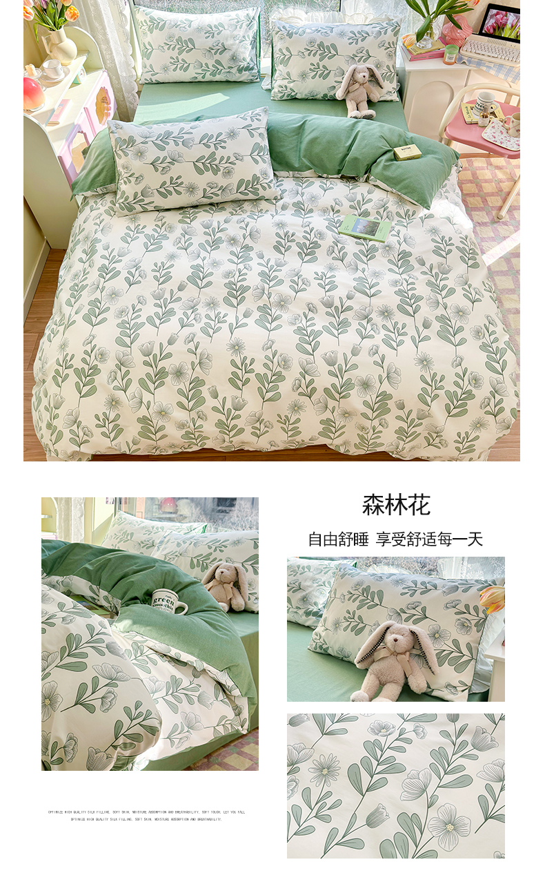商品名称:琪格格 2025春夏新款全棉纯棉40S13372小清新四件套 森林花