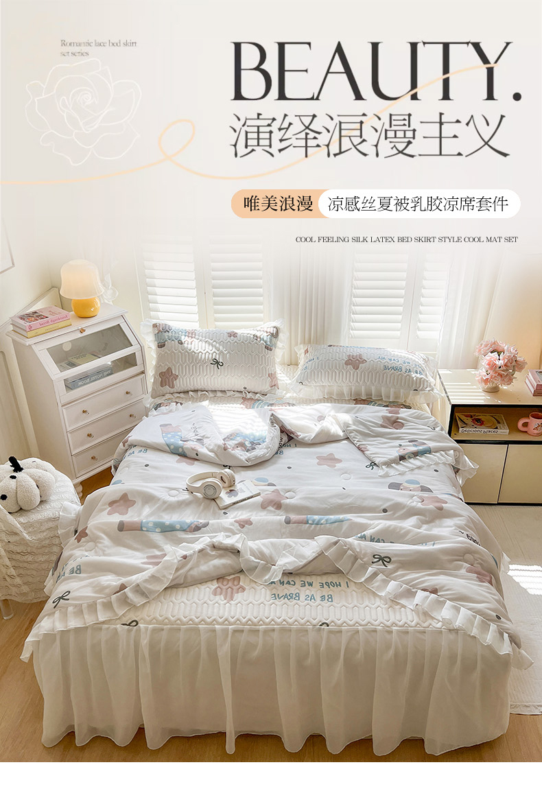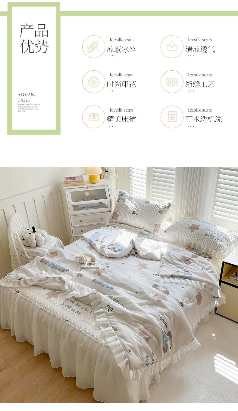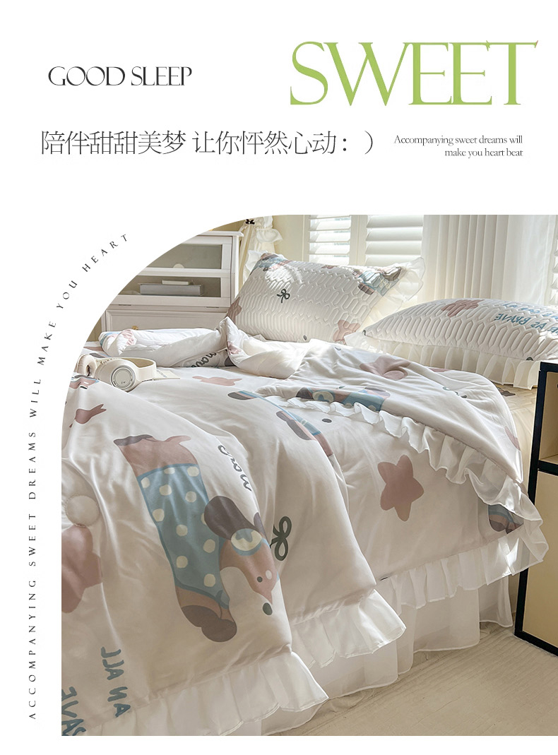• 91家纺网 家纺一手货源 找家纺 慕澄2025新款小版印花床裙款乳胶凉席凉感丝夏被四件套 星星狗