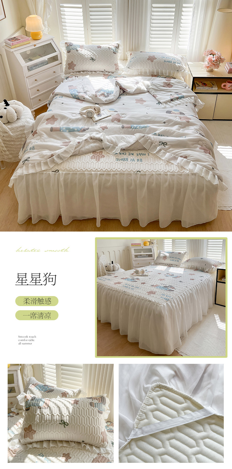 慕澄2025新款小版印花床裙款乳胶凉席凉感丝夏被四件套 星星狗