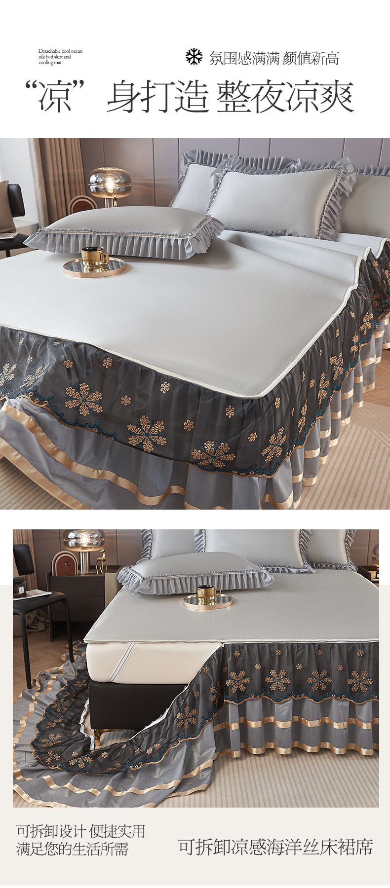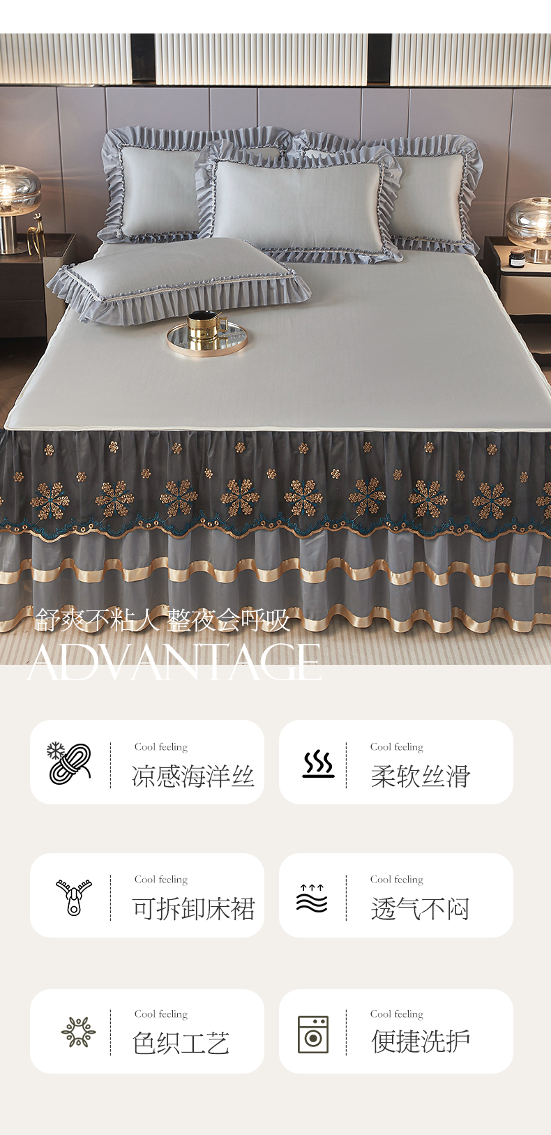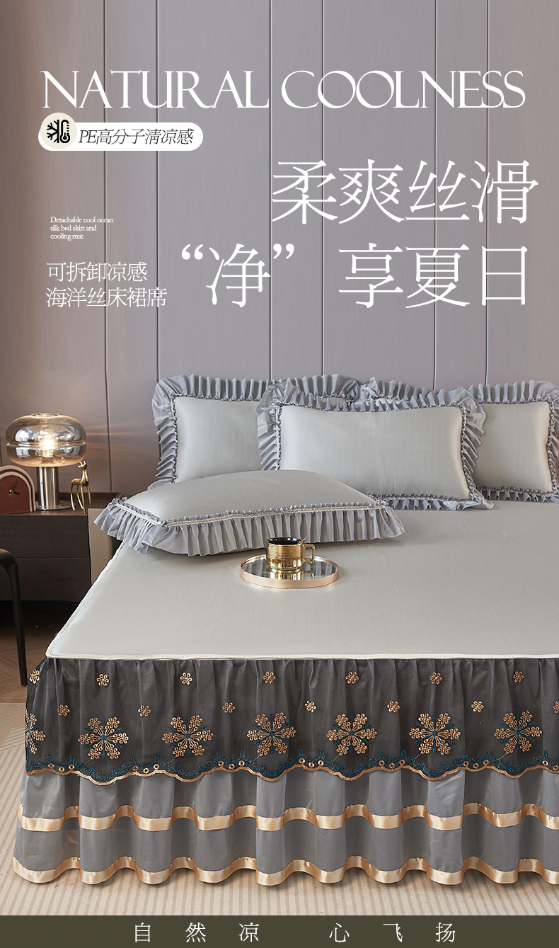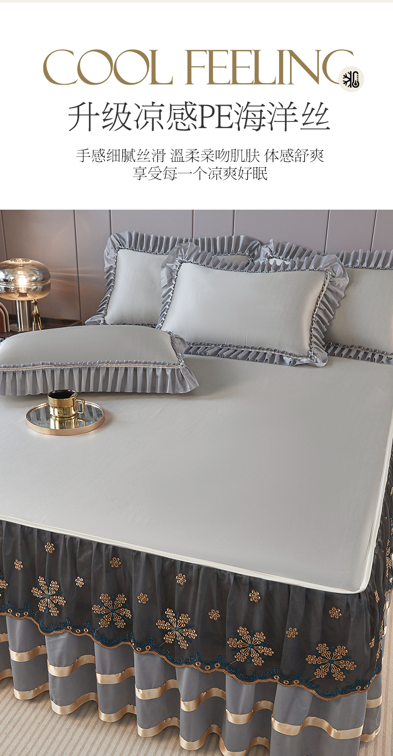 情恒家纺 2025新款纯色可拆卸PE海洋丝床裙席三件套 绅士灰