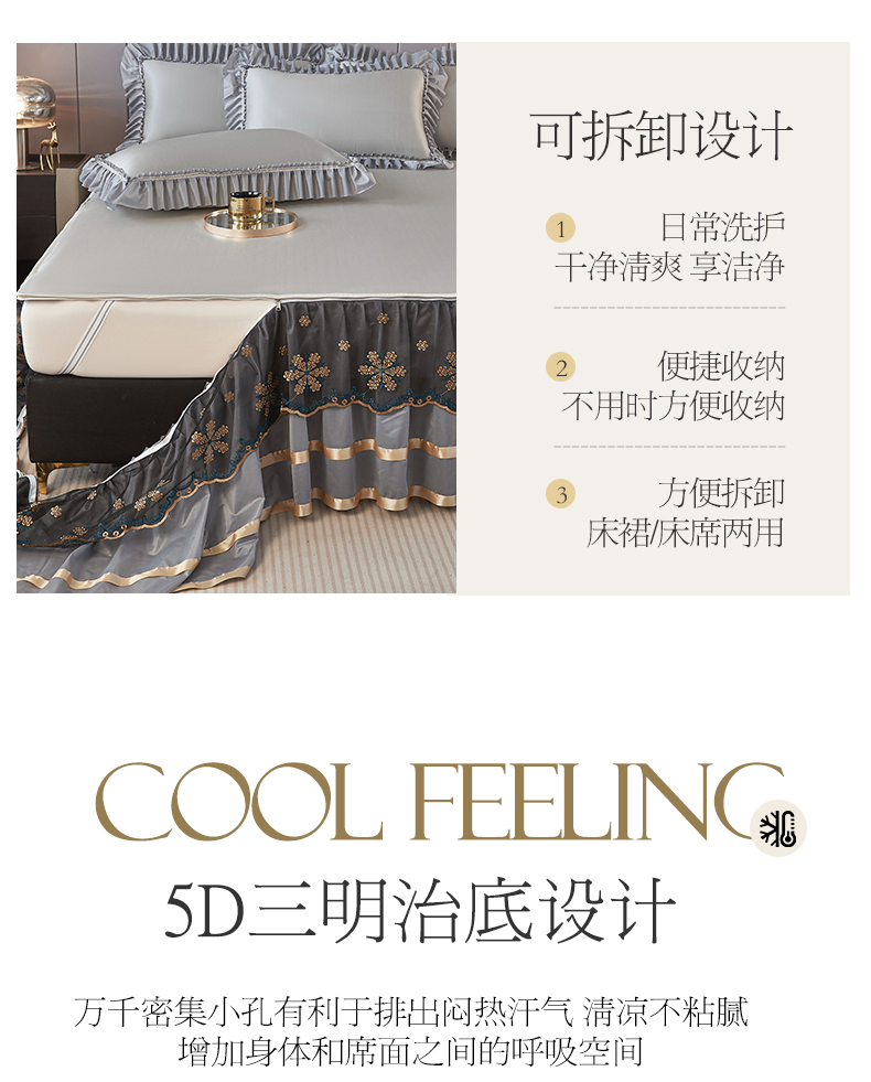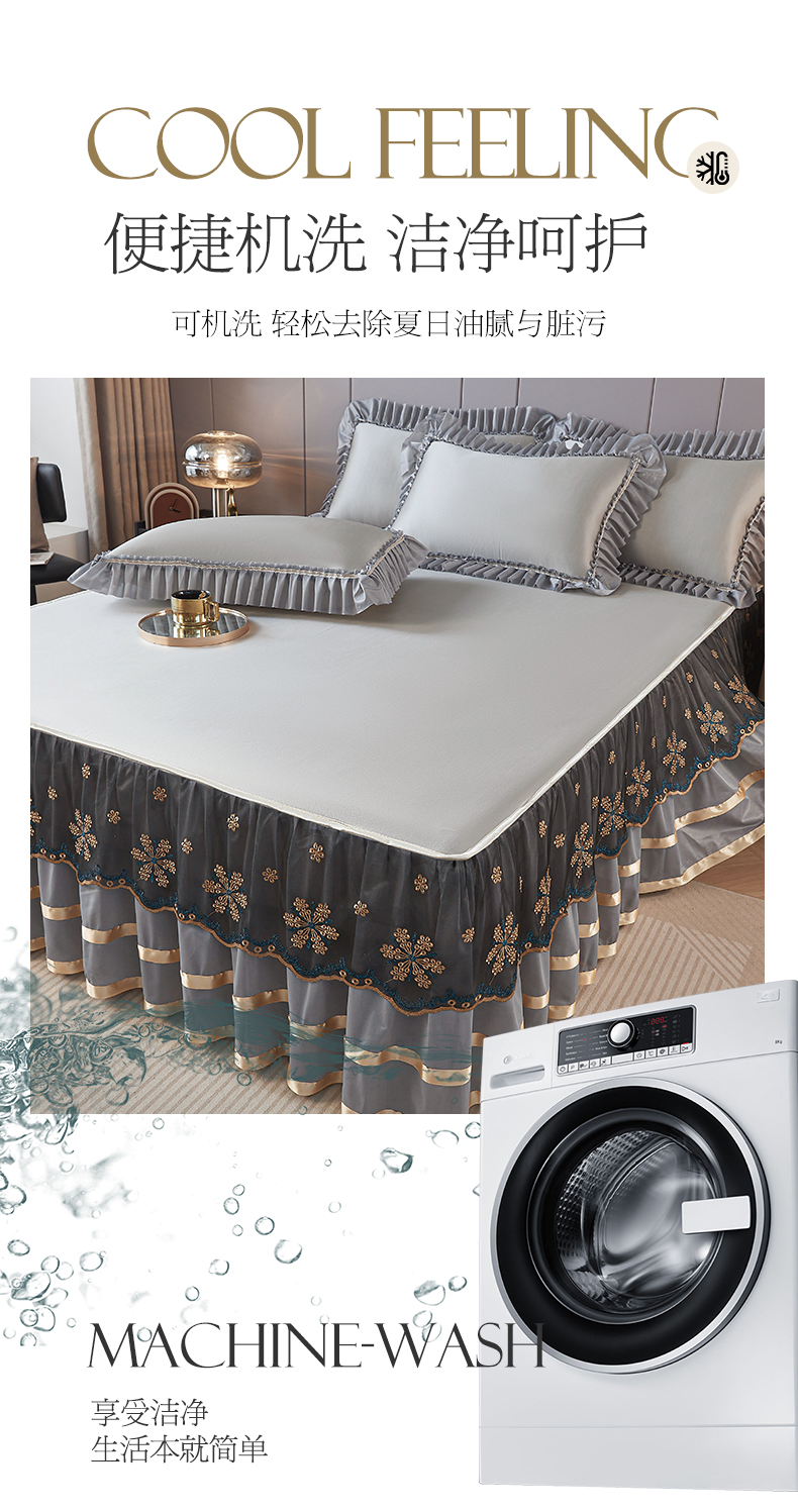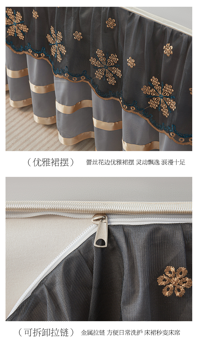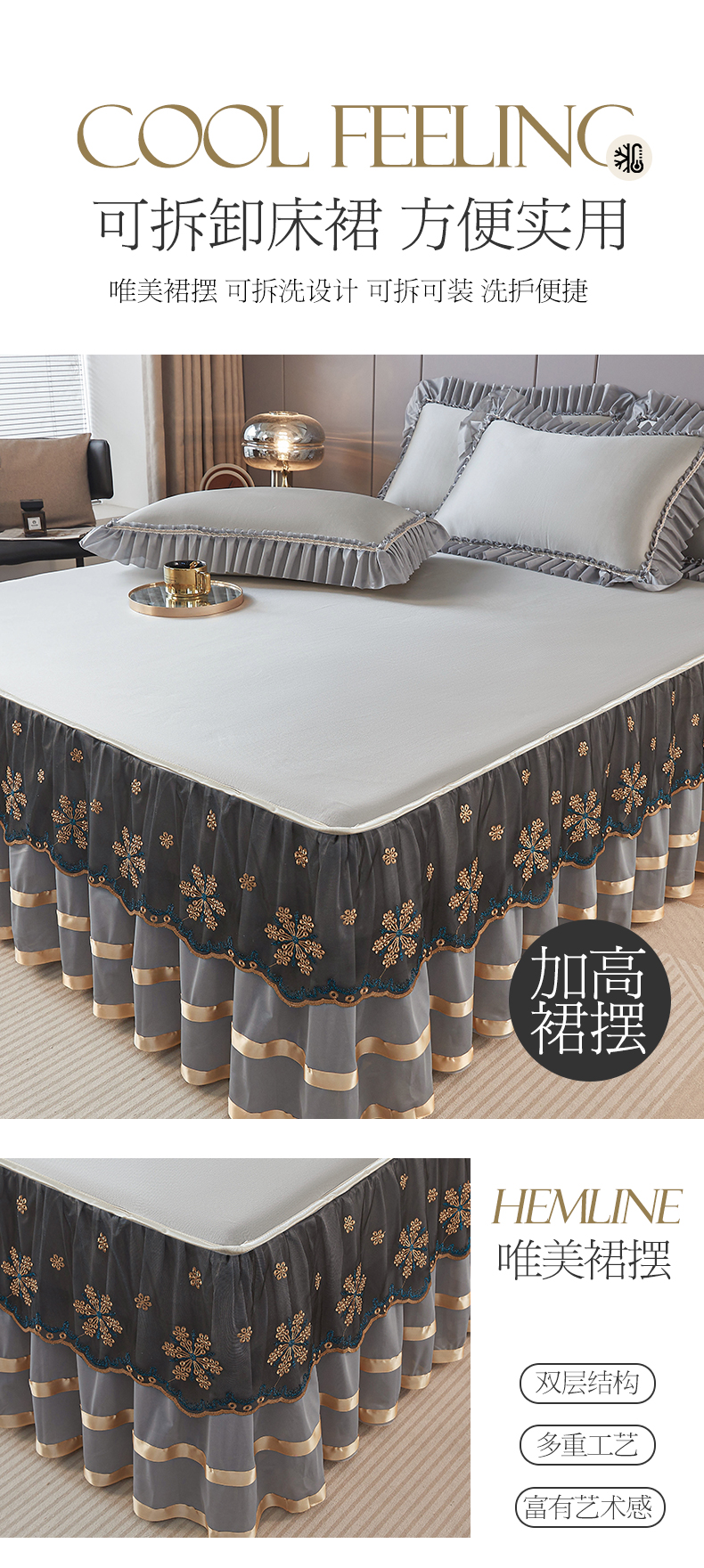 情恒家纺 2025新款纯色可拆卸PE海洋丝床裙席三件套 绅士灰