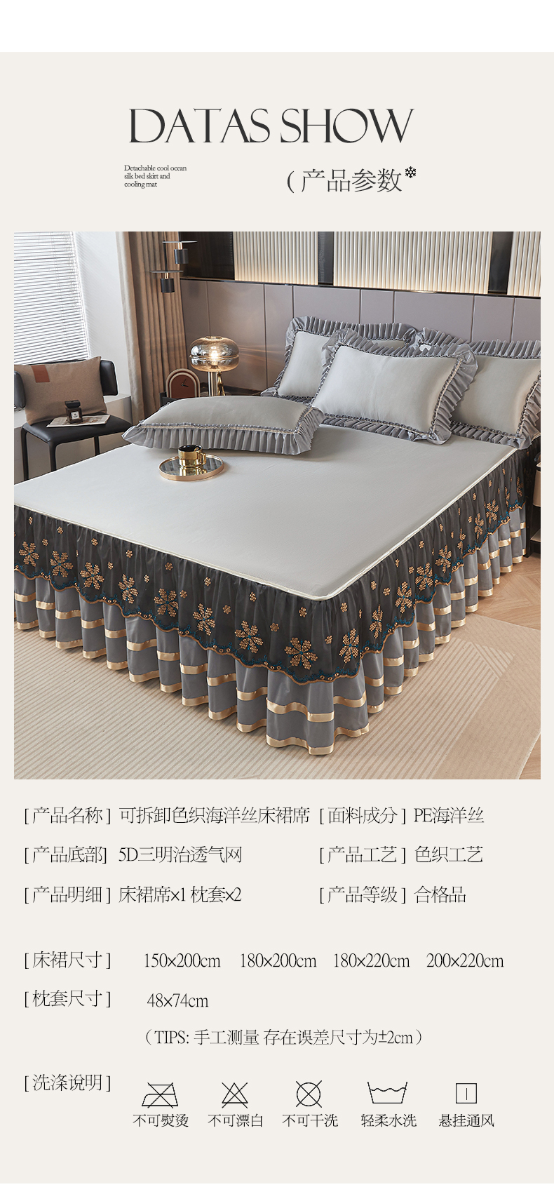 商品名称:情恒家纺 2025新款纯色可拆卸PE海洋丝床裙席三件套 绅士灰