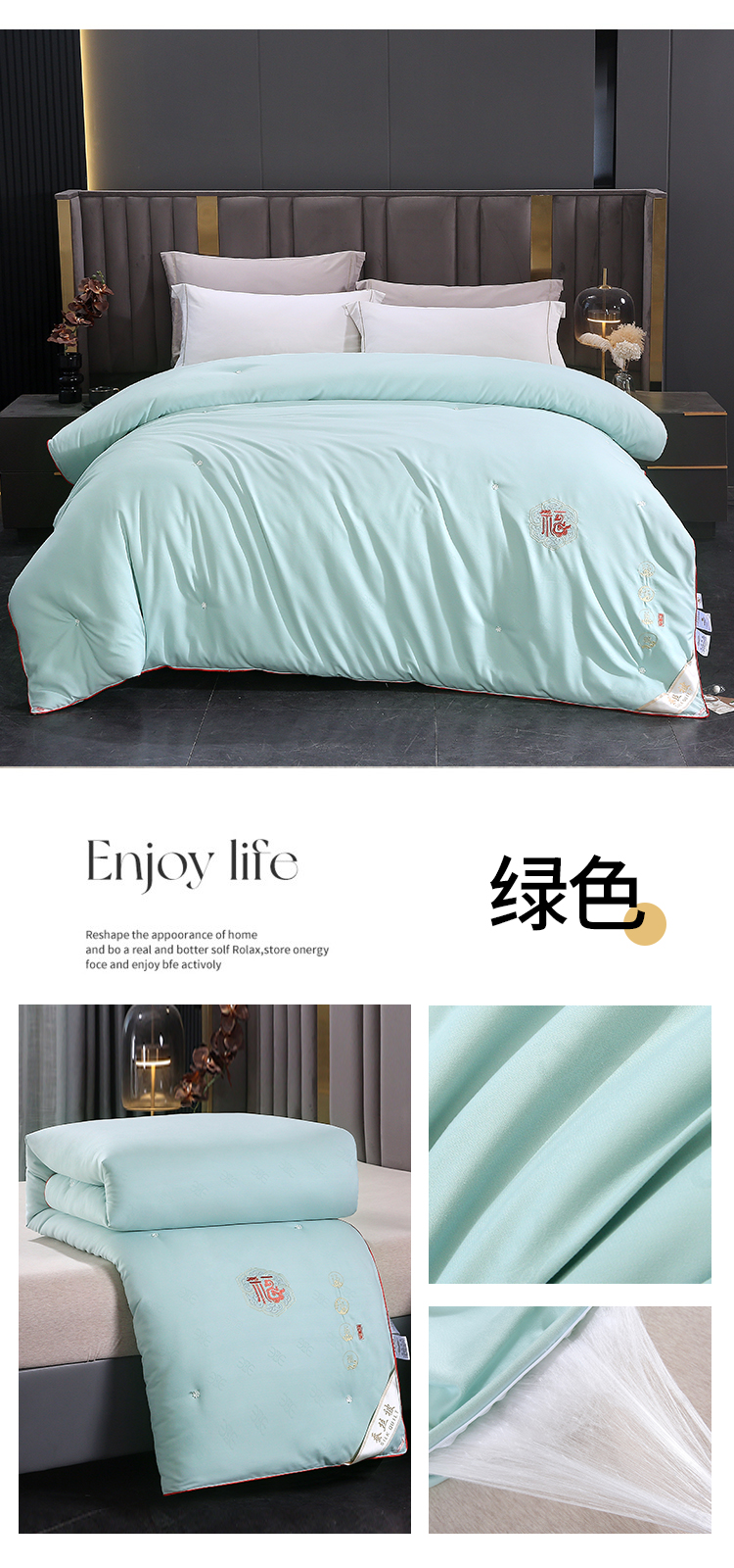 • 91家纺网 家纺一手货源 找家纺 芭芭棉家纺 2025春夏新款全棉纯棉百福被被子被芯 百福刺绣-绿