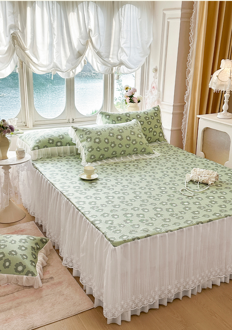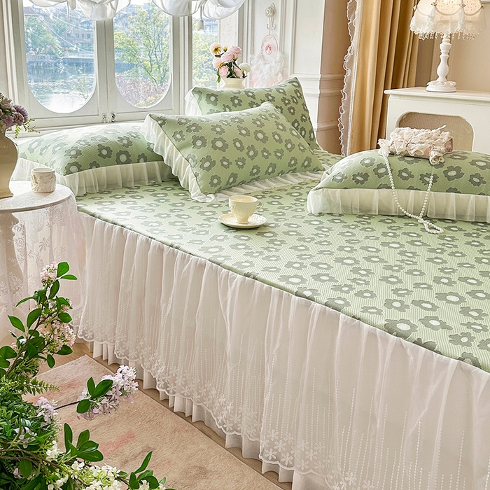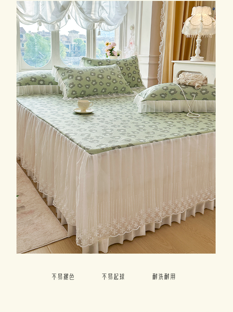 商品名称:(总)芷卧 2025新款凉豆豆PE凉感刺绣双层花边床裙款冰豆豆凉席三件套(提供买家秀)