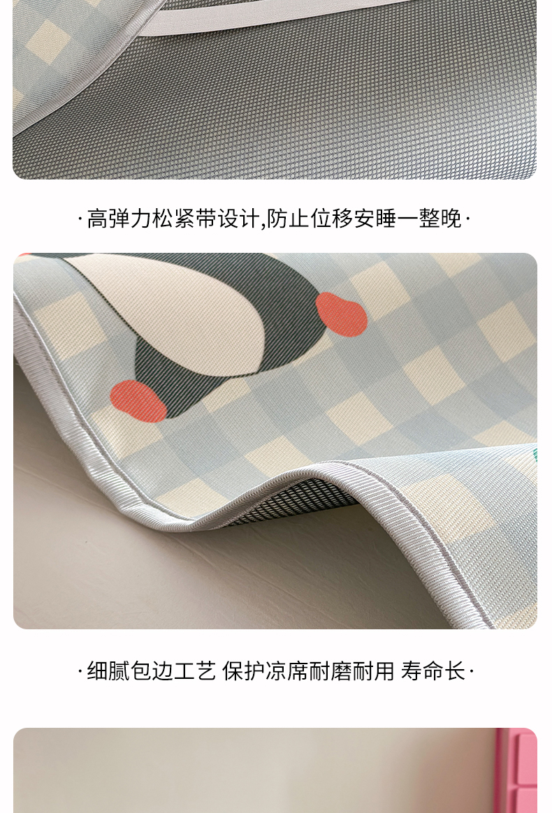 萝莉家纺 2025新款升级900D加厚数码印花斜纹冰丝床席款凉席三件套 企鹅萌萌