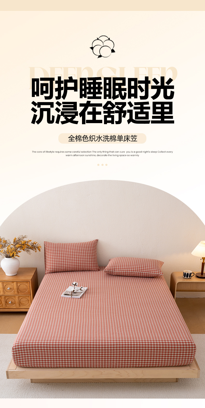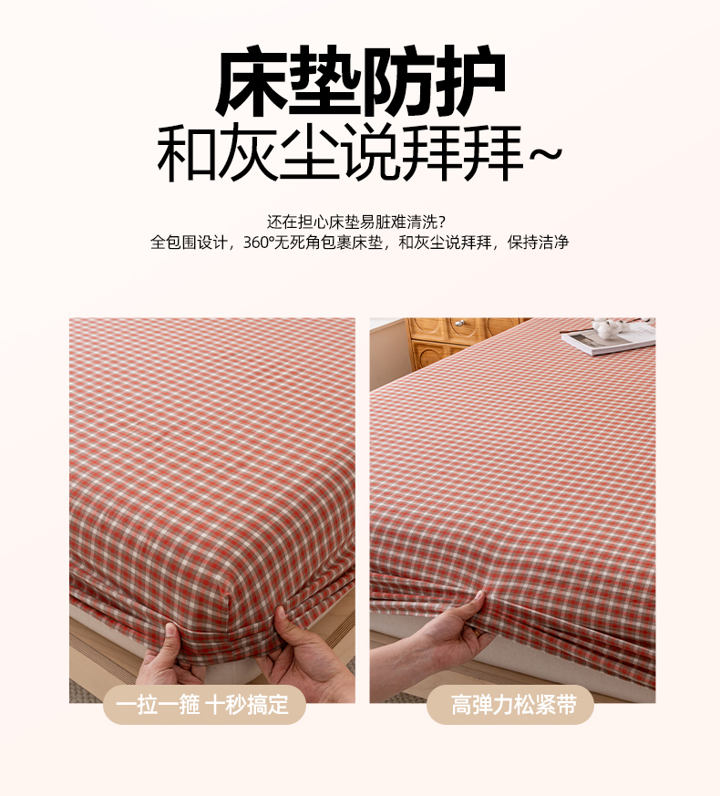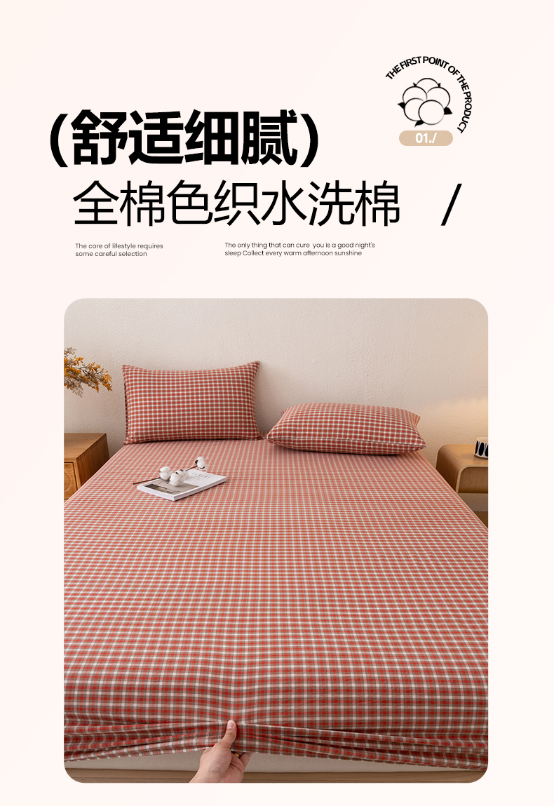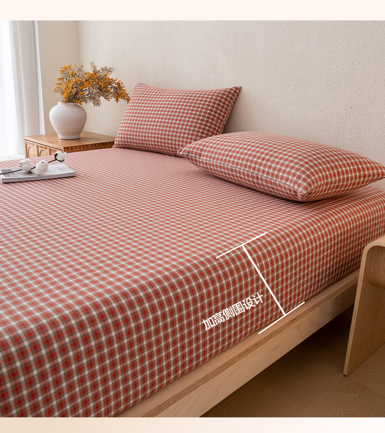 商品名称:吉象家纺 2025新款全棉色织水洗棉床笠三件套 克洛伊红