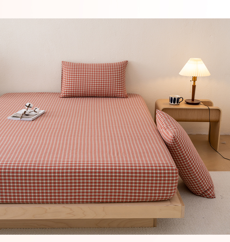 吉象家纺 2025新款全棉色织水洗棉床笠三件套 克洛伊红