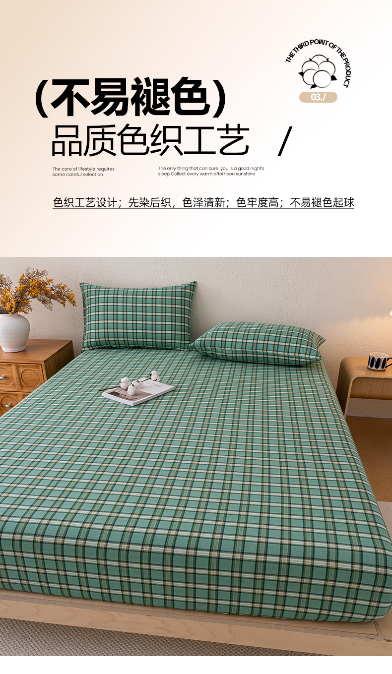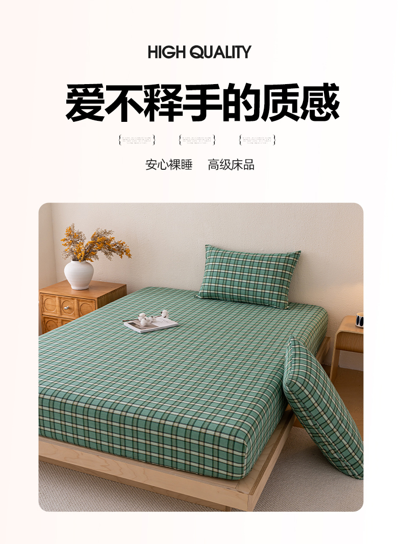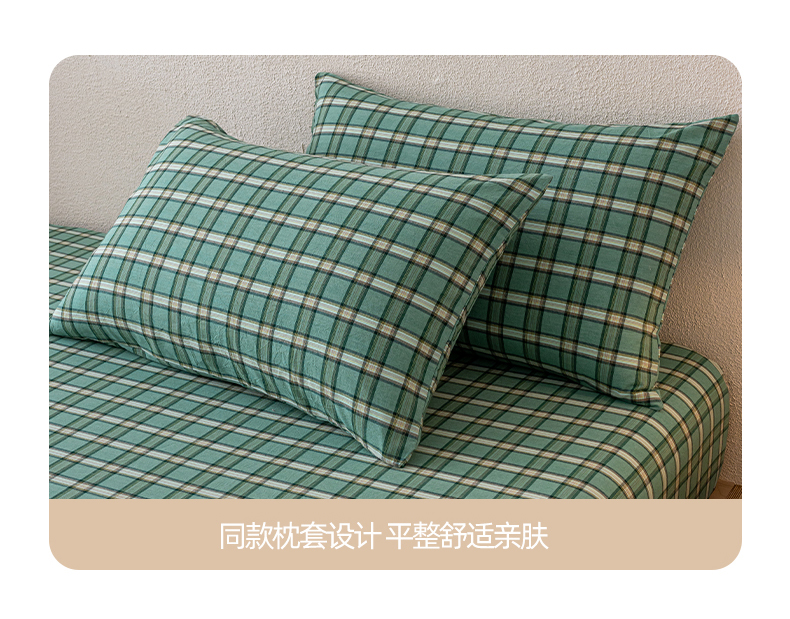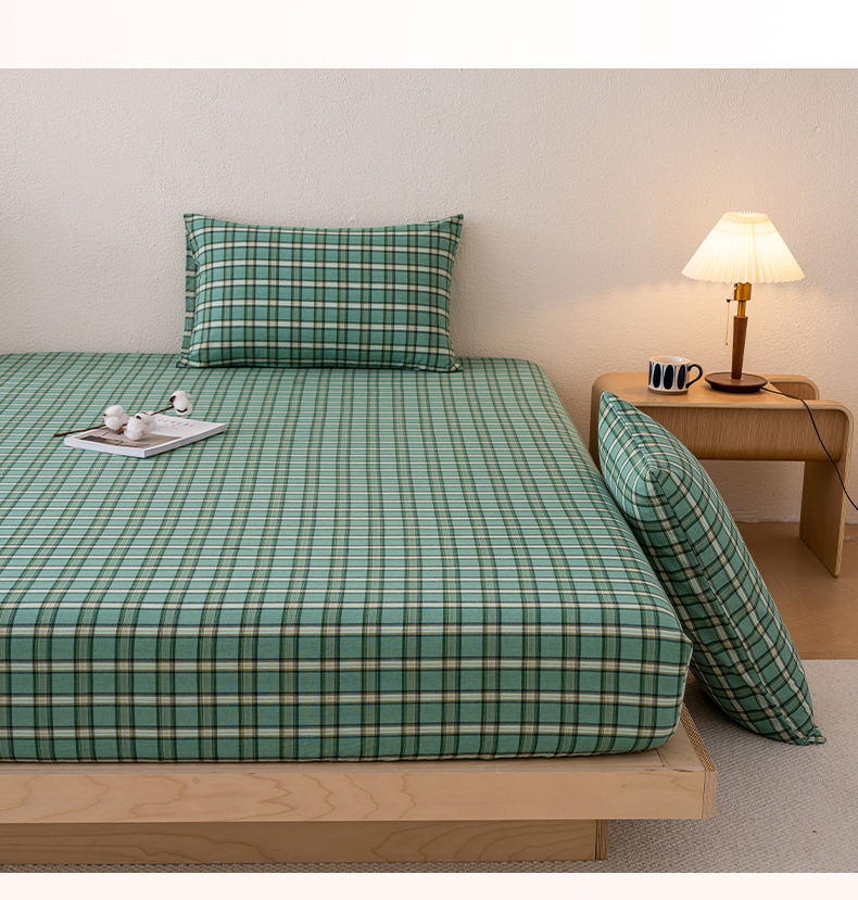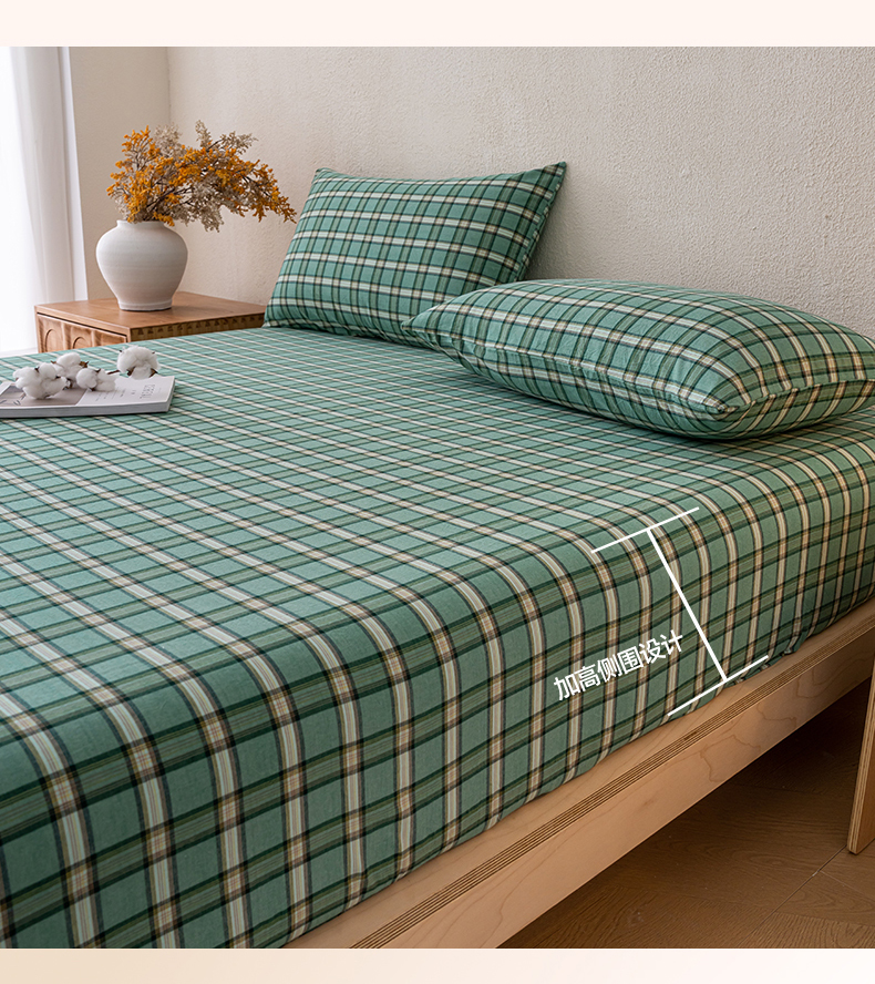 吉象家纺 2025新款全棉色织水洗棉床笠三件套 新春绿