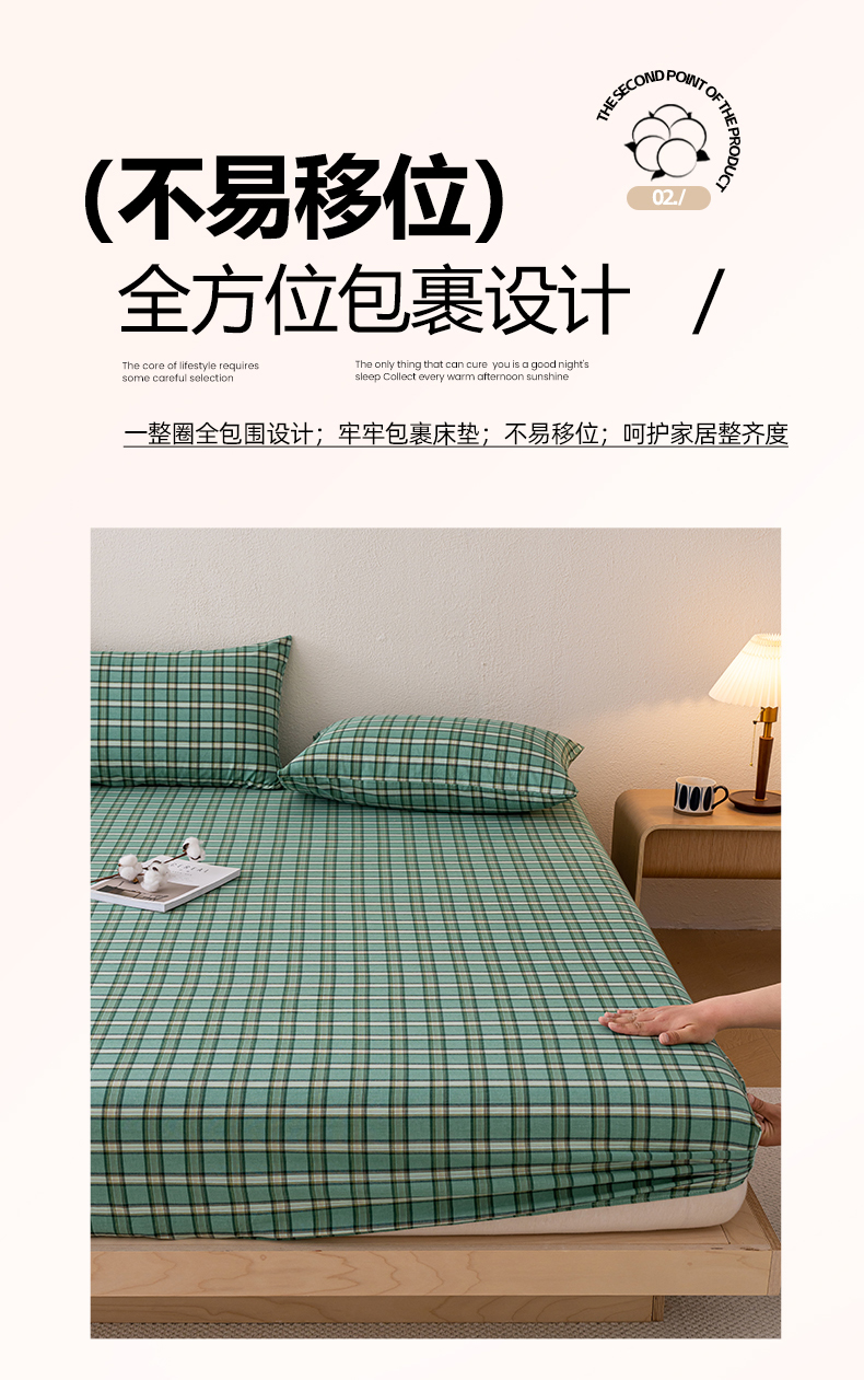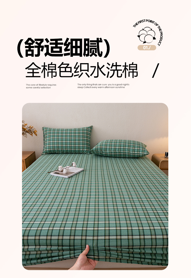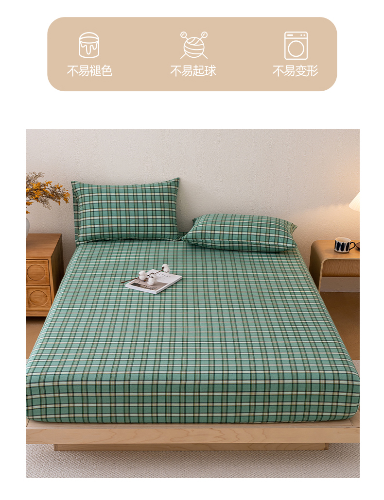 吉象家纺 2025新款全棉色织水洗棉床笠三件套 新春绿