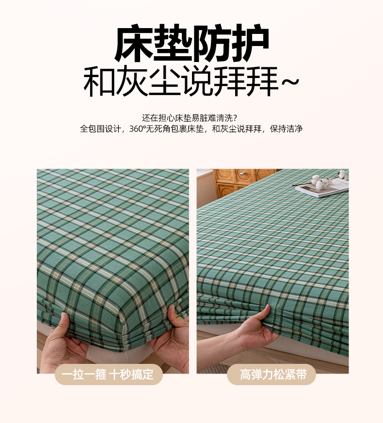 商品名称:吉象家纺 2025新款全棉色织水洗棉床笠三件套 新春绿