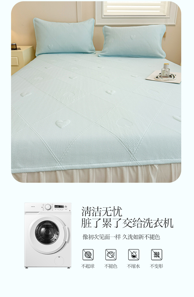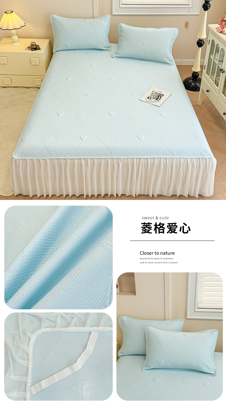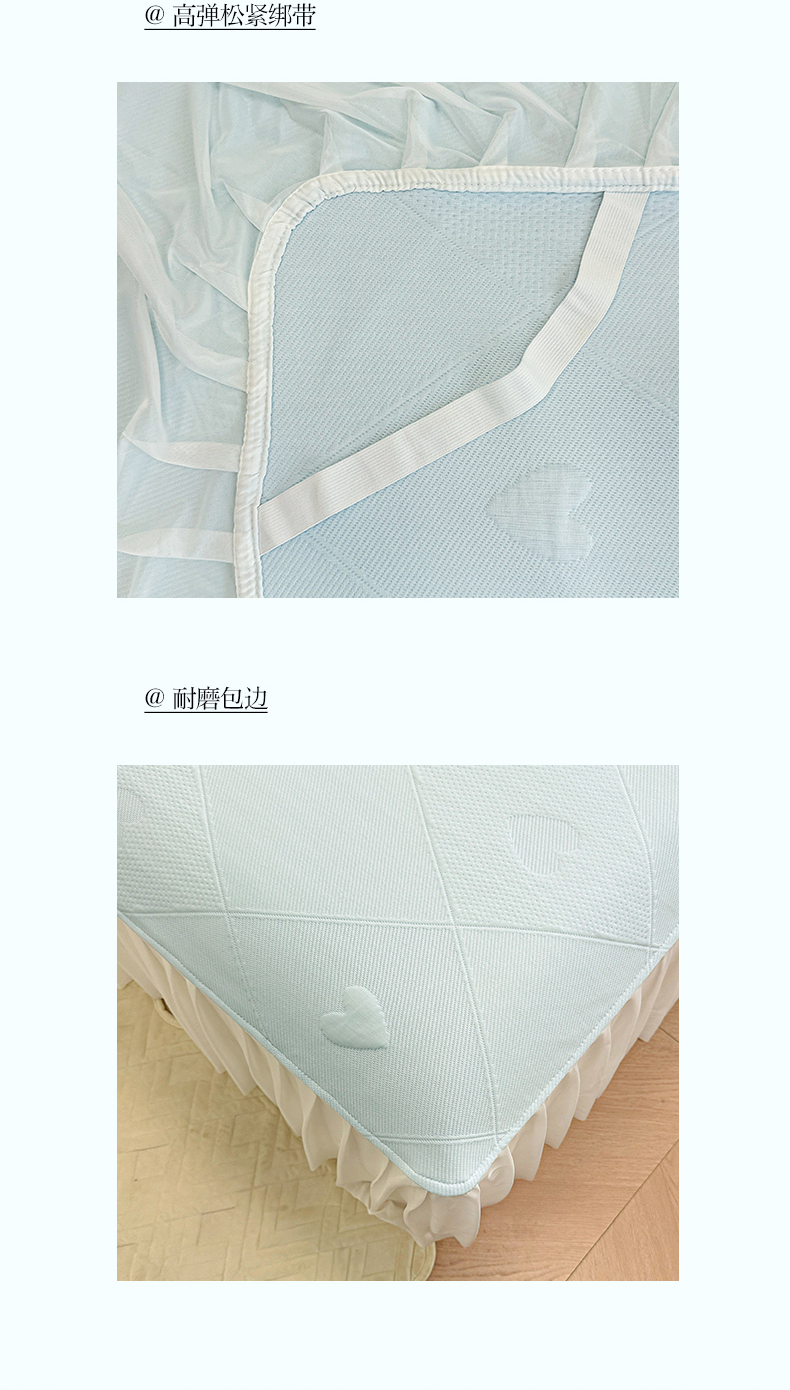 商品名称:布卢姆床垫 2025新款A类PE乙纶冰豆豆凉席床裙款 菱格爱心