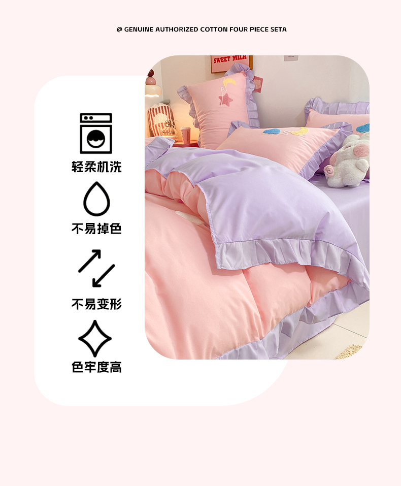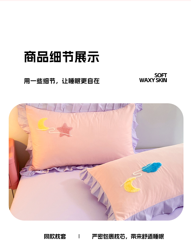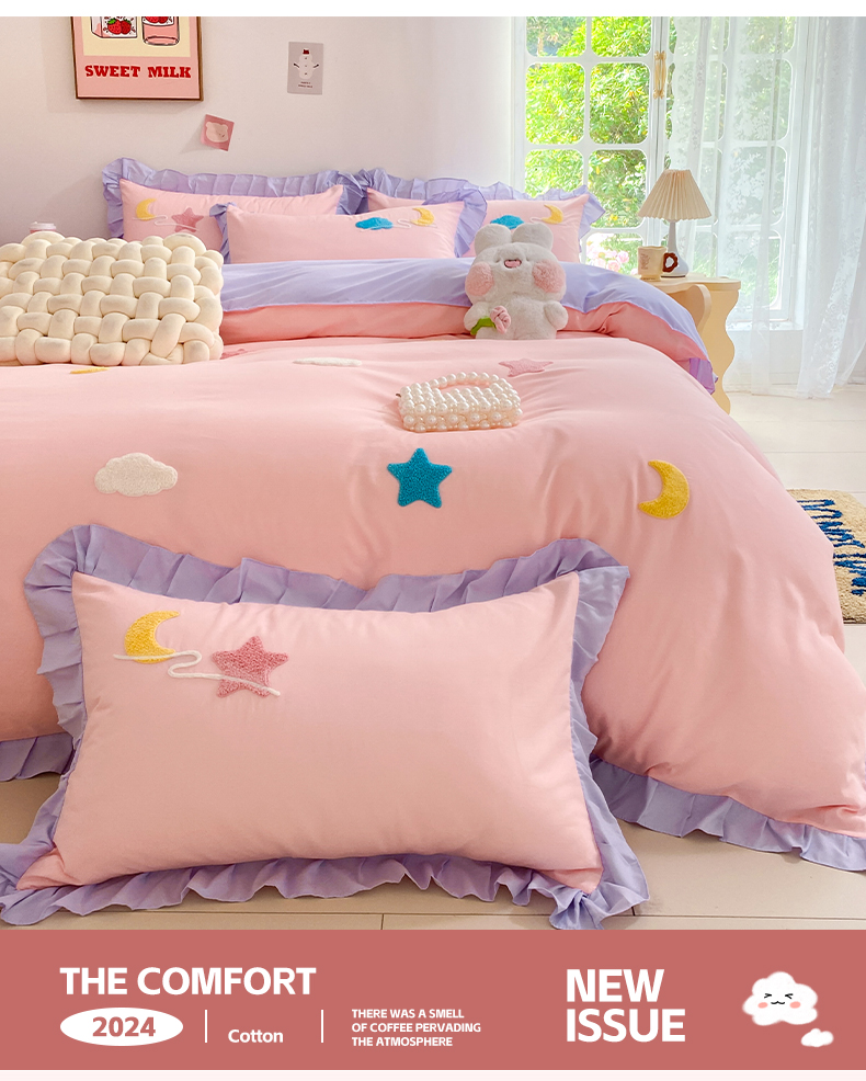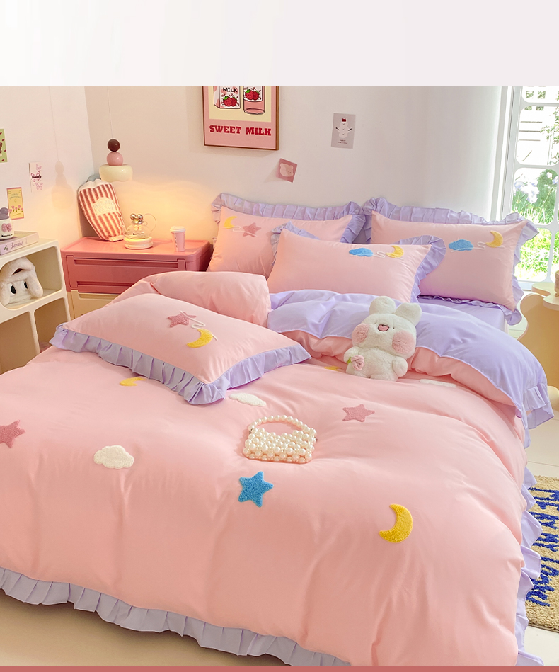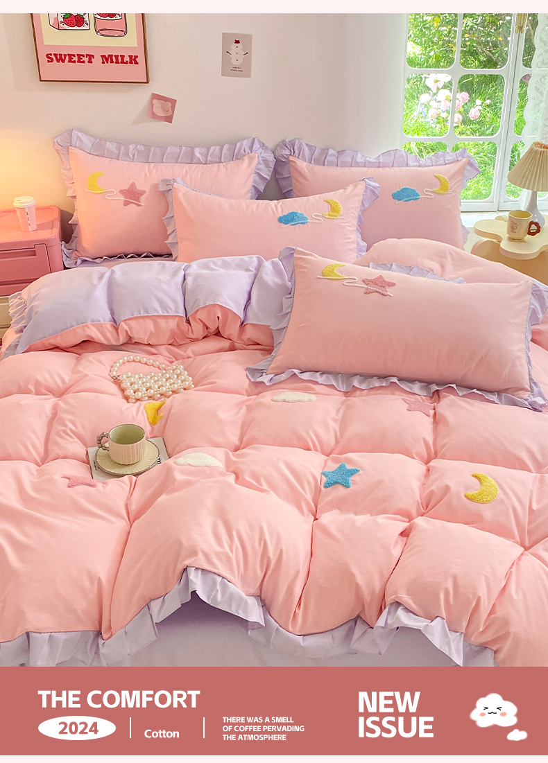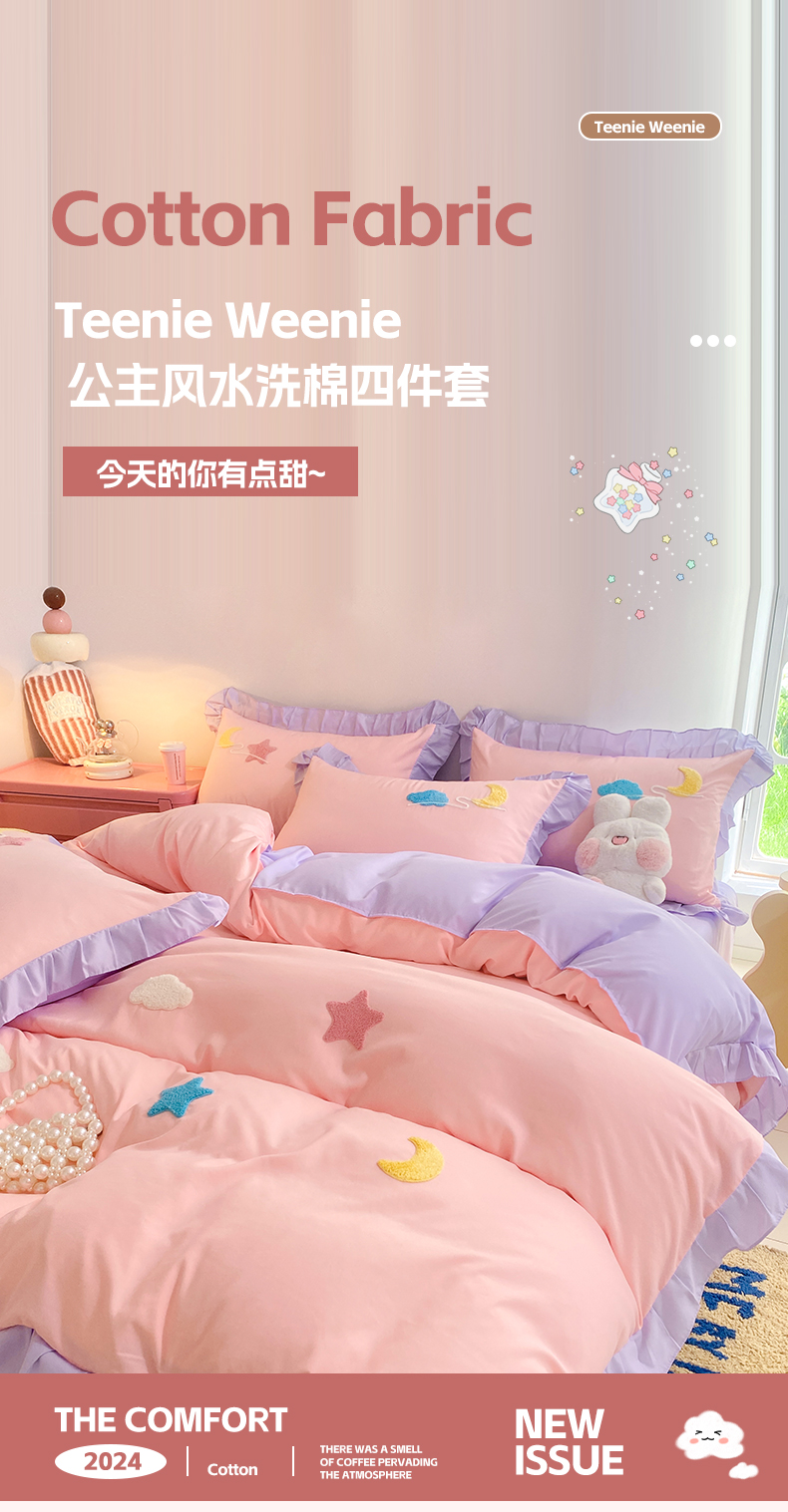 当前位置: 91家纺网 > 商品网购 > 床品套件 > 四件套 > 水洗棉四件套 > 雨菲家纺 2025新款公主风水洗棉四件套-星月 星月粉紫