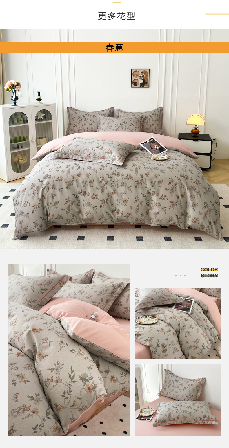 (总)星期三 2025年4月新款铂金全棉纯棉13372四件套 加微信有会员价,橙日幽香,花的旅途,花几度-绿,花佳境-咖,花枝草蔓,柔纱花影,棠影寻-粉,小雨录-紫,星际漫游