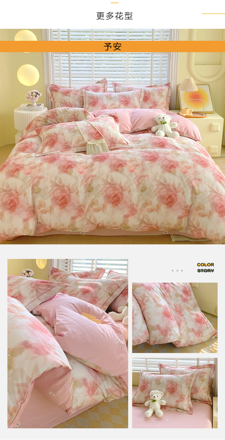 (总)星期三家纺 2025年8月新款铂金全棉纯棉13372四件套,花韵-粉,眷恋,蓝茵花,浪漫蝴蝶,莫奈,桃之夭夭,婉尔