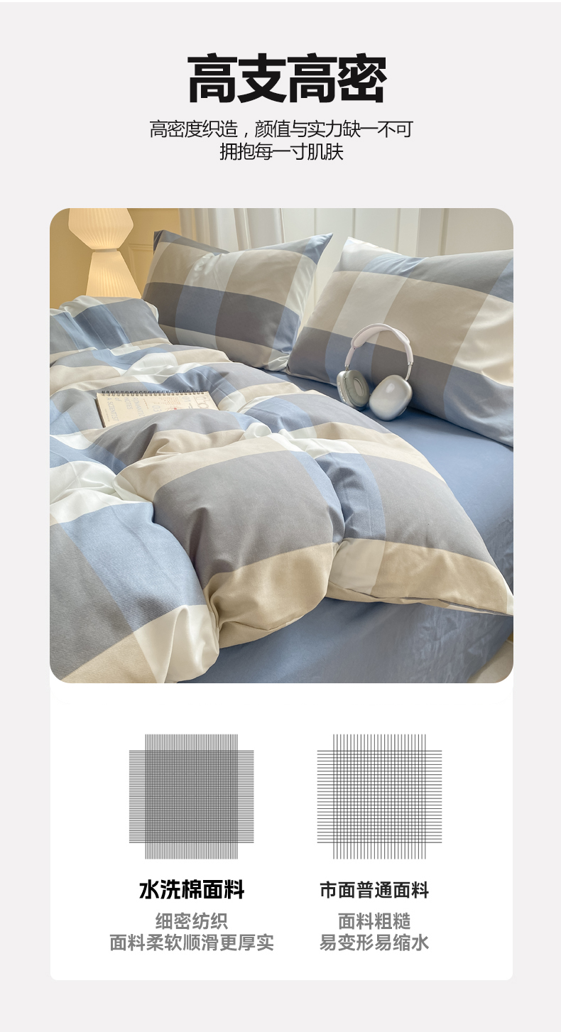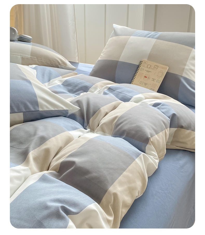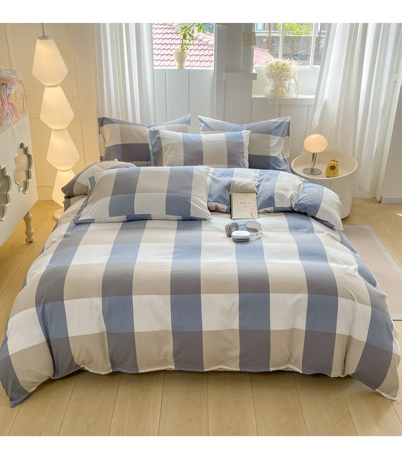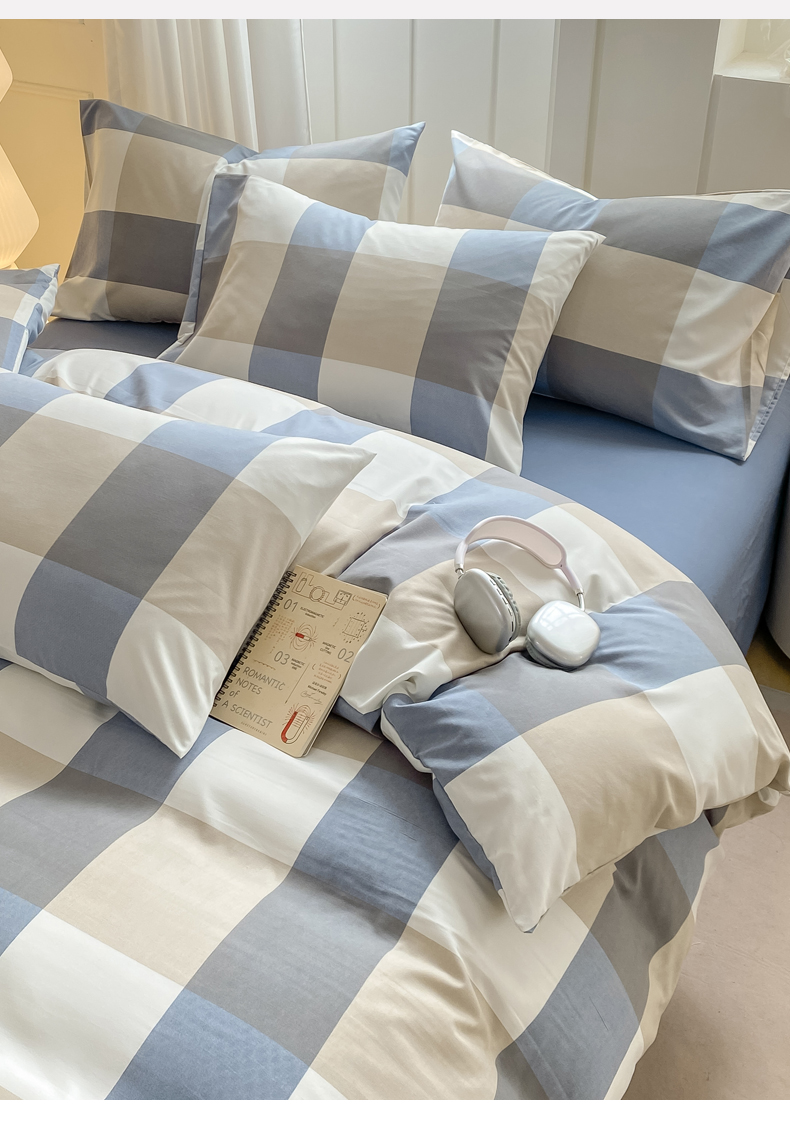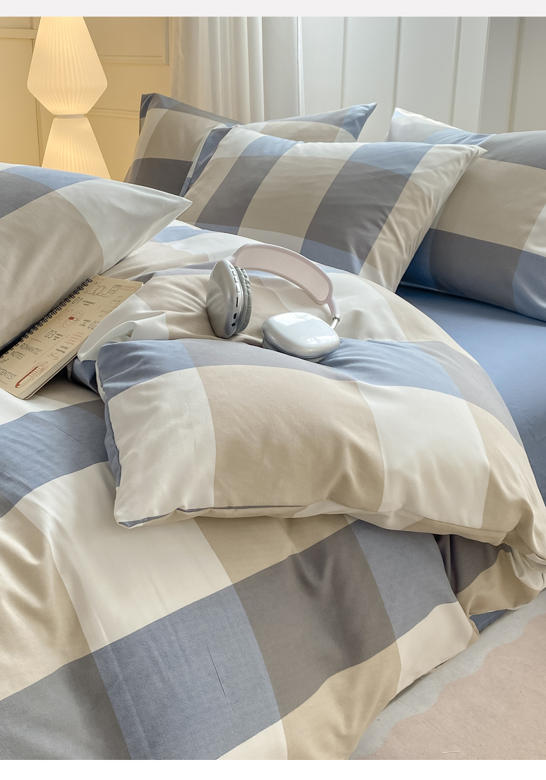 当前位置: 91家纺网 > 商品网购 > 床品套件 > 四件套 > 水洗棉四件套 > 慕木家纺 2025新品A类条纹简约无印风水洗棉床单款四件套条纹格系列(抽空压缩可跨境提供买家秀) 湛蓝大格+海青