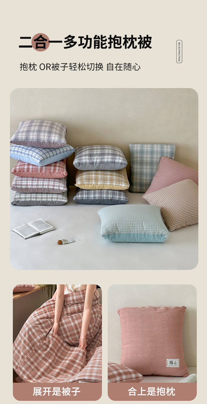 (总)多米家居 2025新款多功能印花嗖系抱枕被,暗苔绿,丹宁蓝,矿石黑,小鸡黄,杏仁咖,云水灰