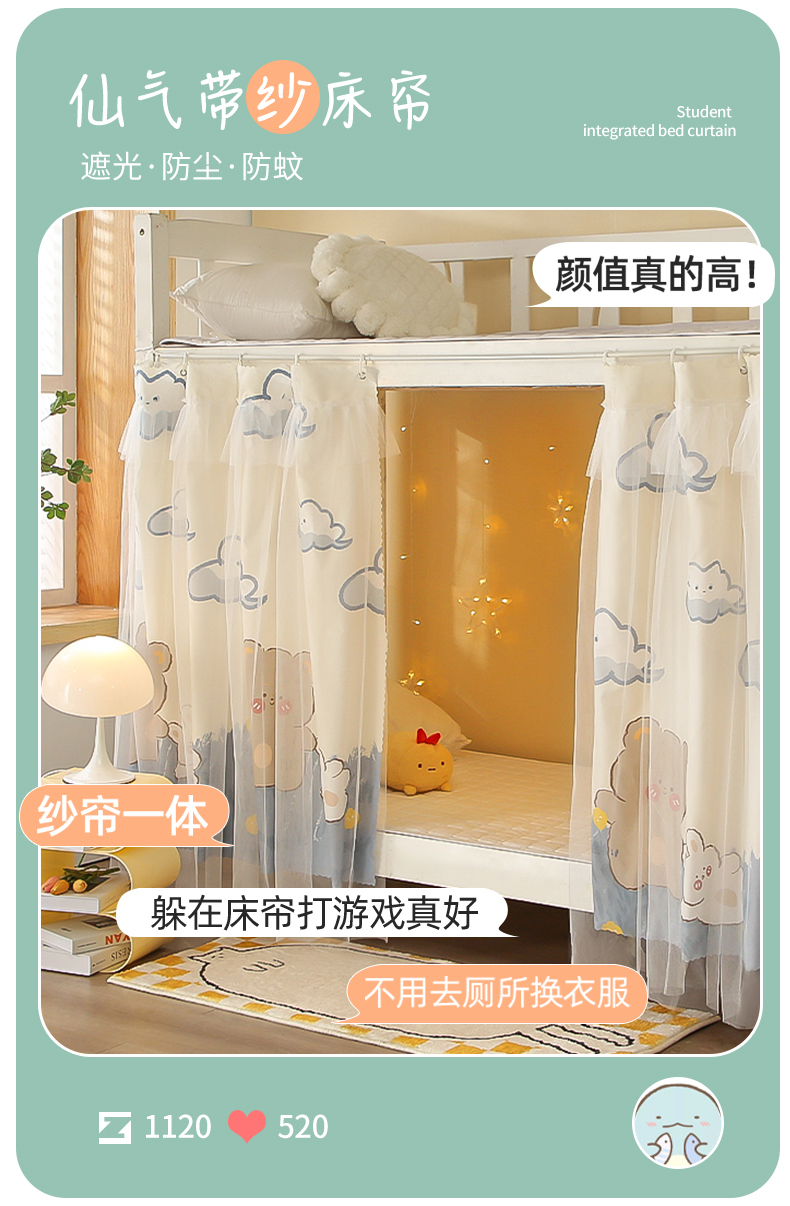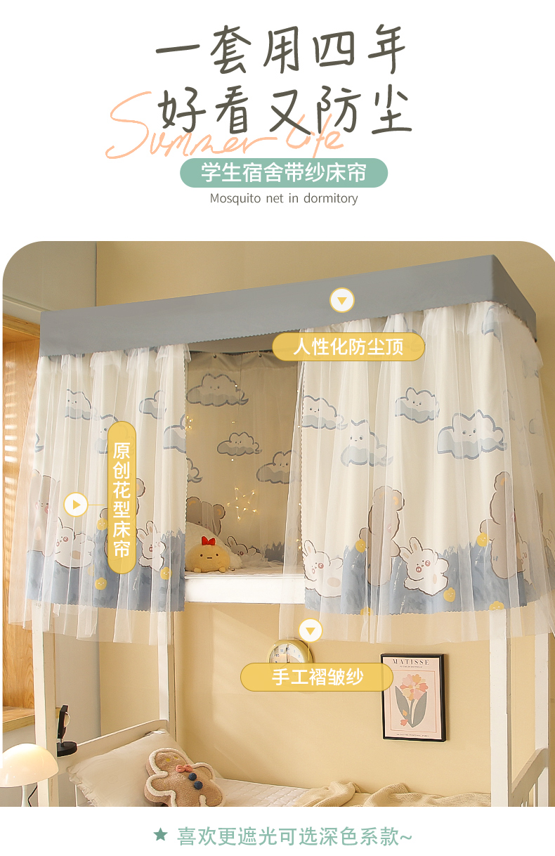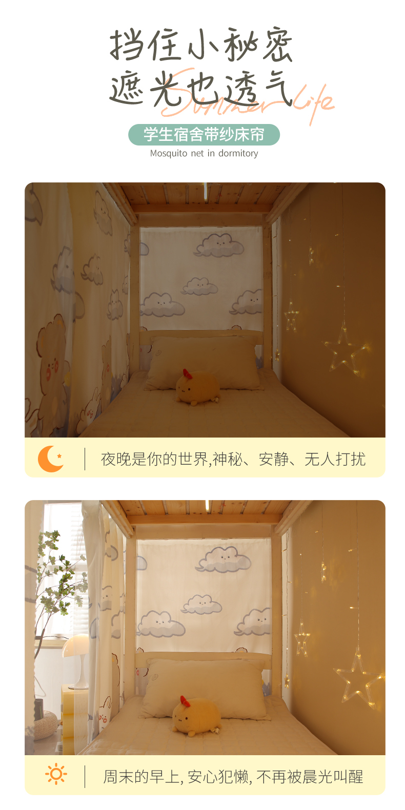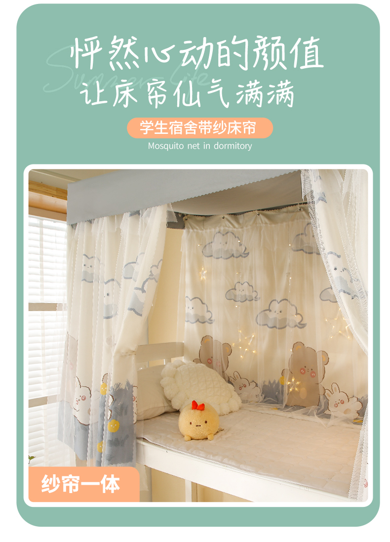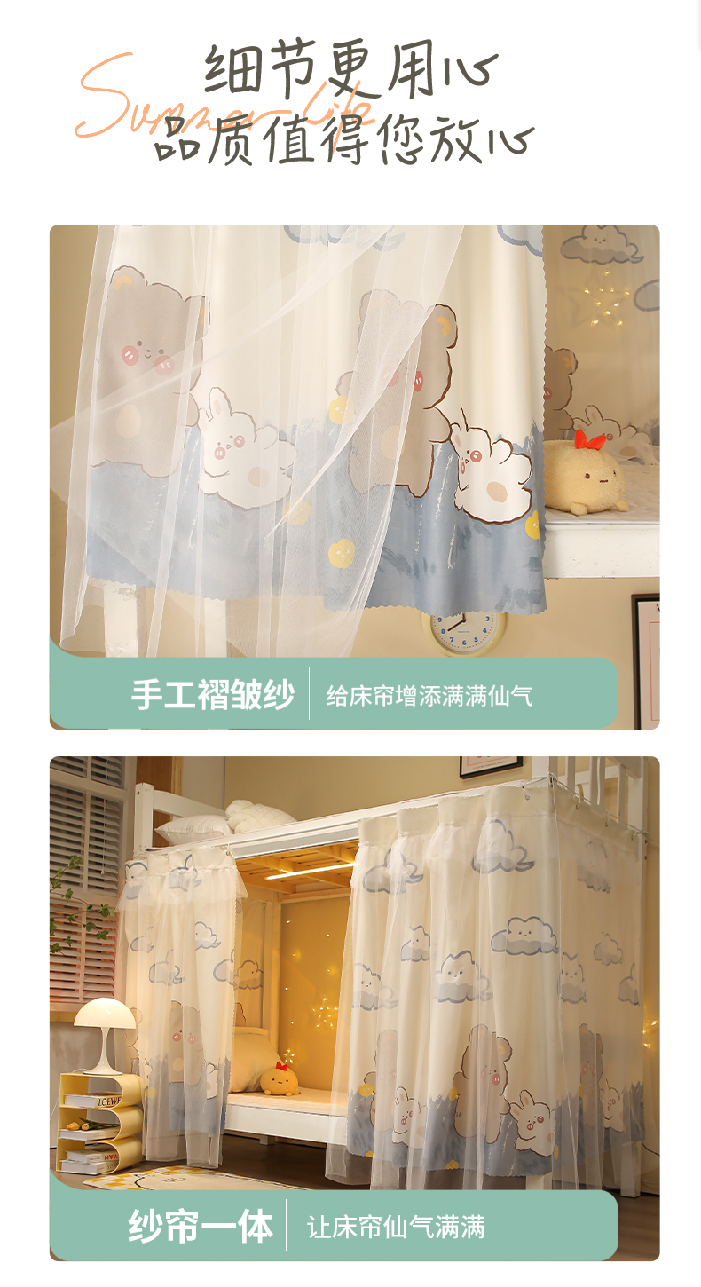 商品名称:公主风学生宿舍床帘上下铺隐私帘员工宿舍简易带纱床帘批发可咨询报价 熊和兔SL42