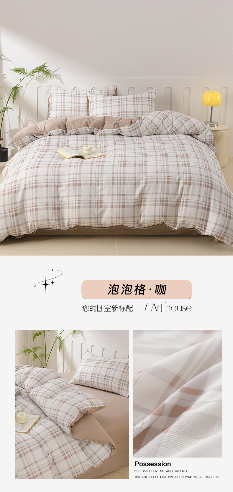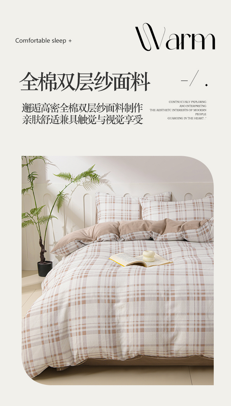 当前位置: 91家纺网 > 商品网购 > 床品套件 > 四件套 > 双层纱四件套 > 金昱纺 2025新款A类全棉纯棉双层纱四件套 泡泡格-咖