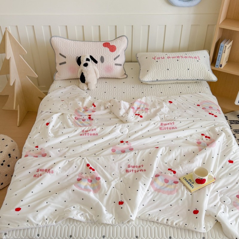 商品名称:顾里家纺 2025新款韩系少女凉感冰皮夏被夏凉被空调被 拼接猫咪