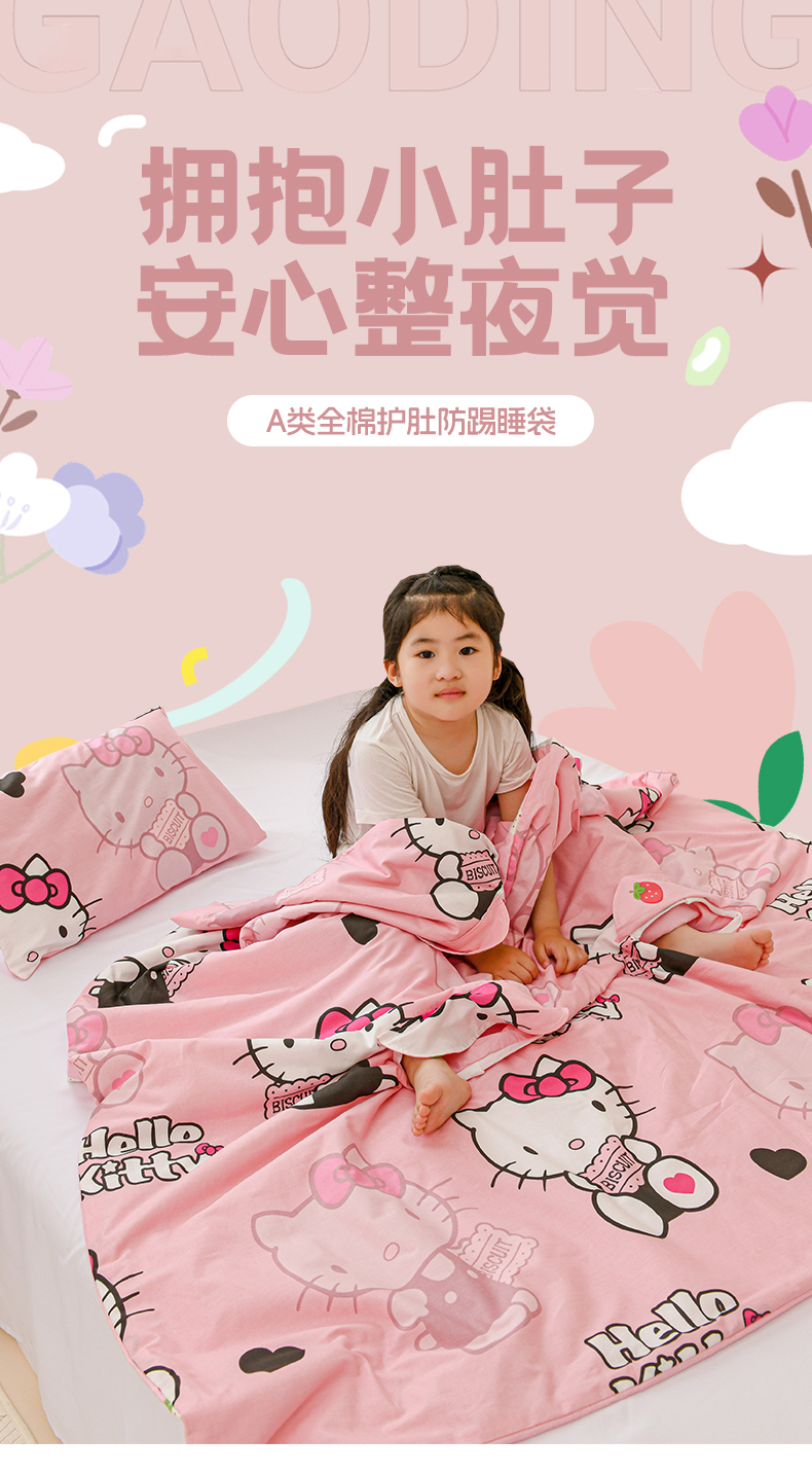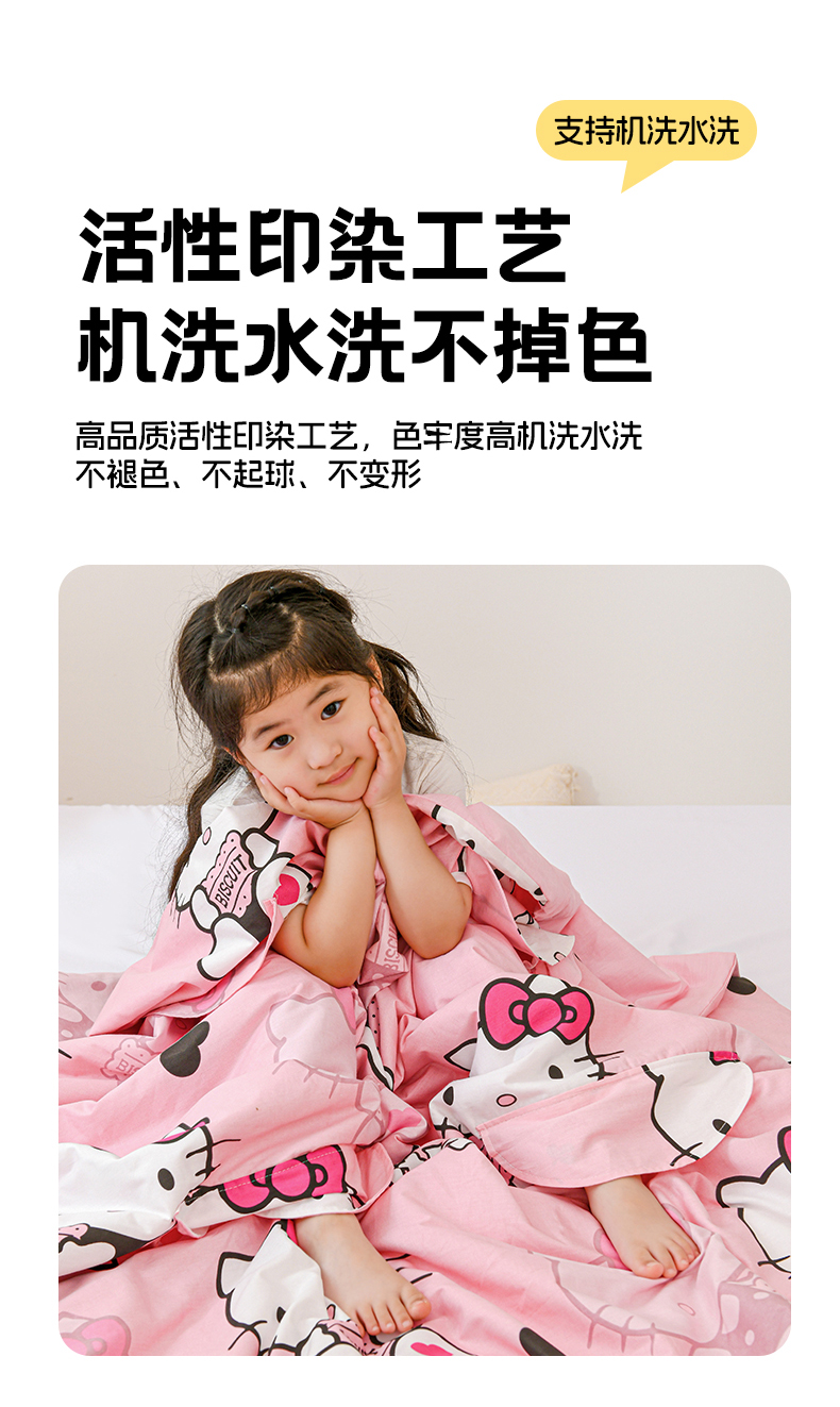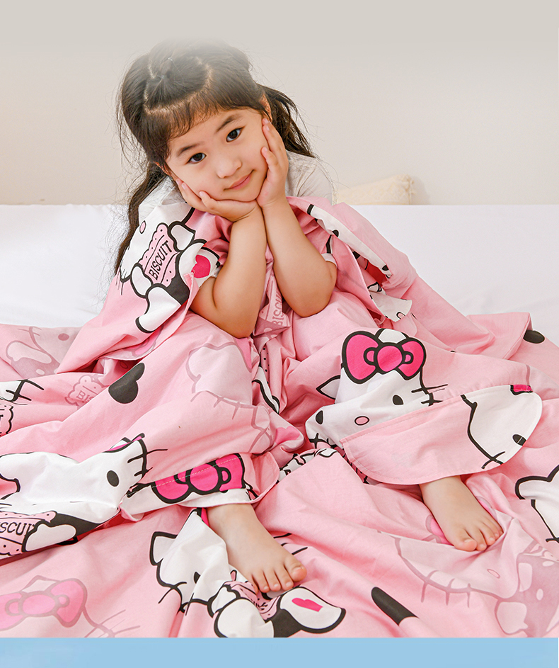 商品名称:名兮家居 2025新款正版授权全棉儿童护肚防踢盖毯 防踢被-爱心kt