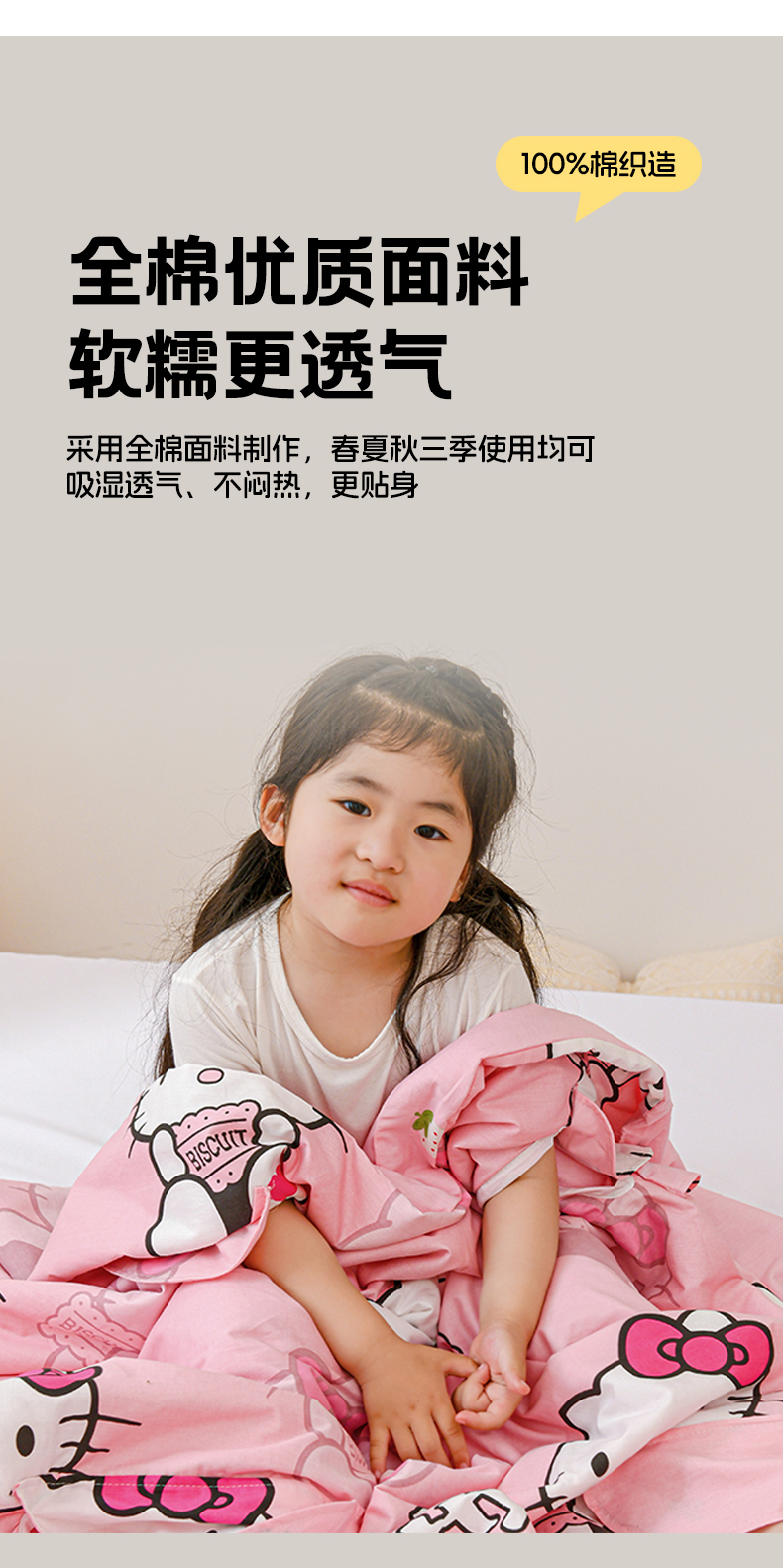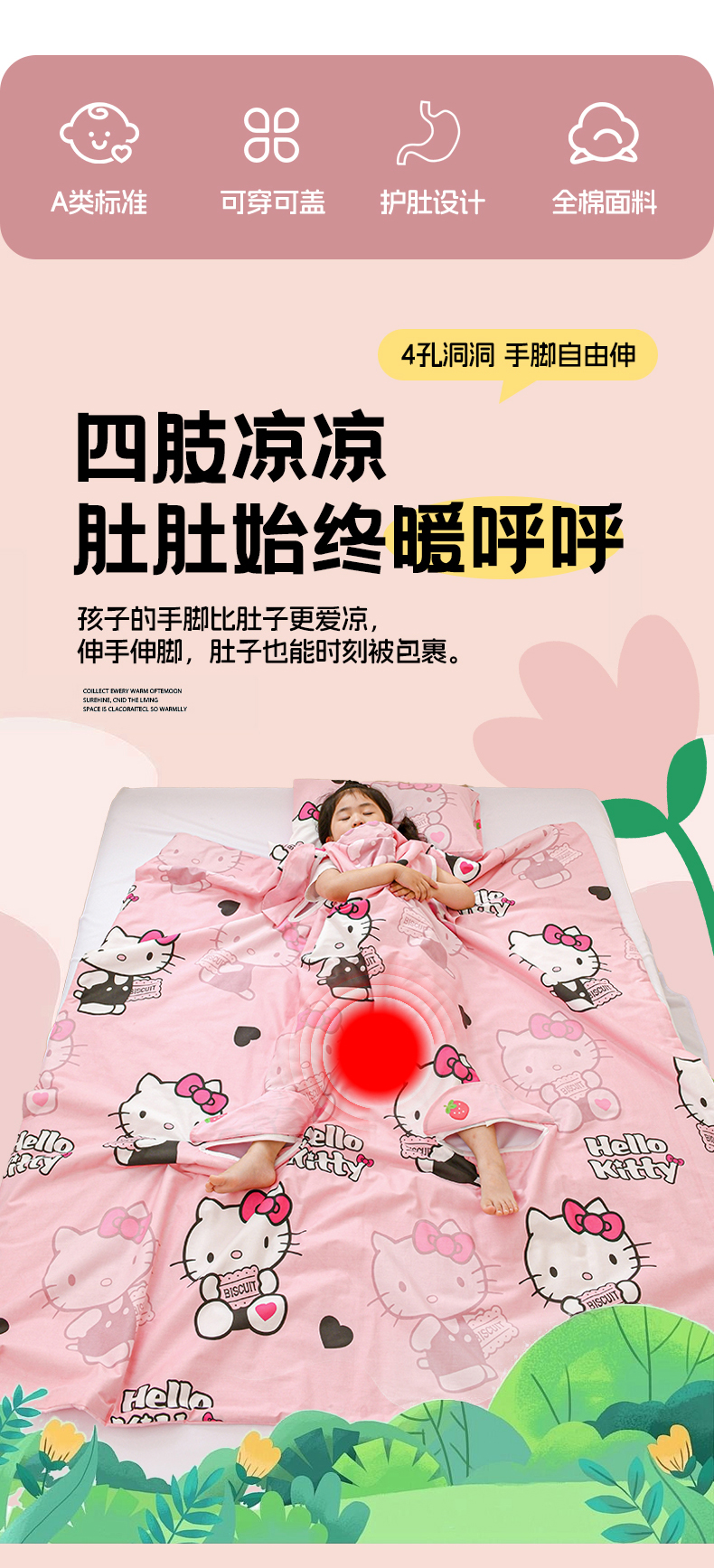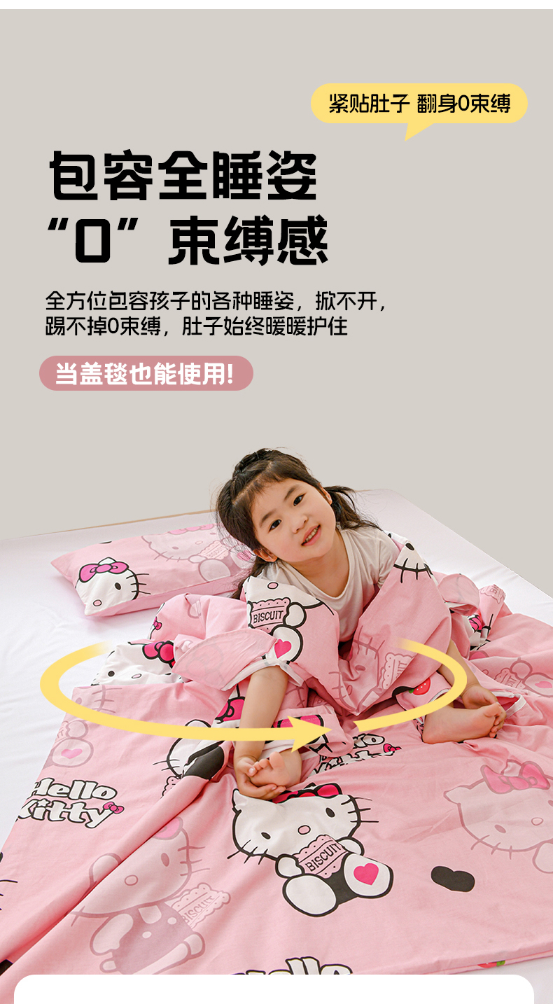 商品名称:名兮家居 2025新款正版授权全棉儿童护肚防踢盖毯 防踢被-爱心kt