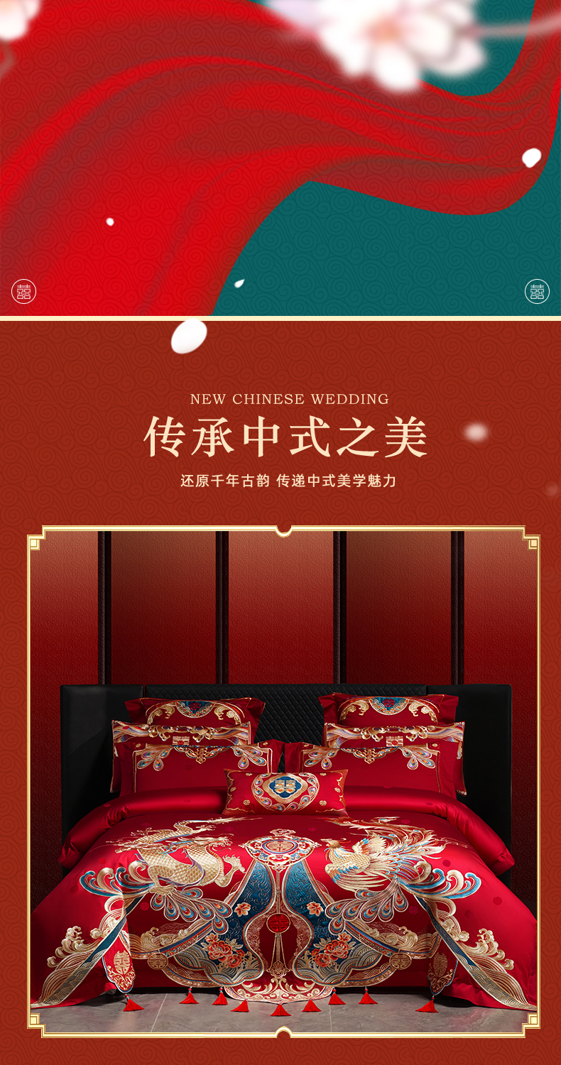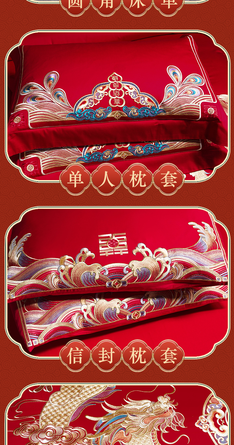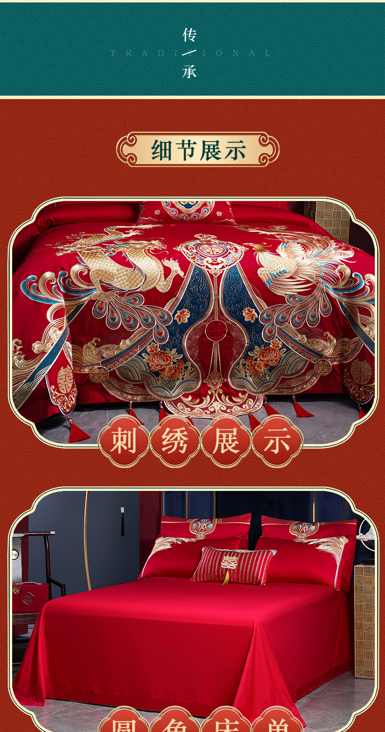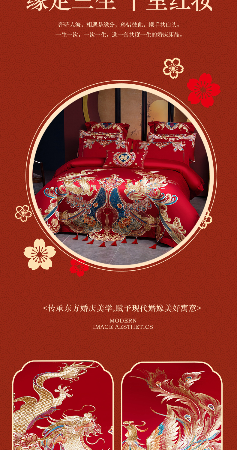 当前位置: 91家纺网 > 商品网购 > 床品套件 > 多件套 > 多件套 > 用心 2025新款长绒棉刺绣新中式婚庆多件套系列 龙祥凤禧